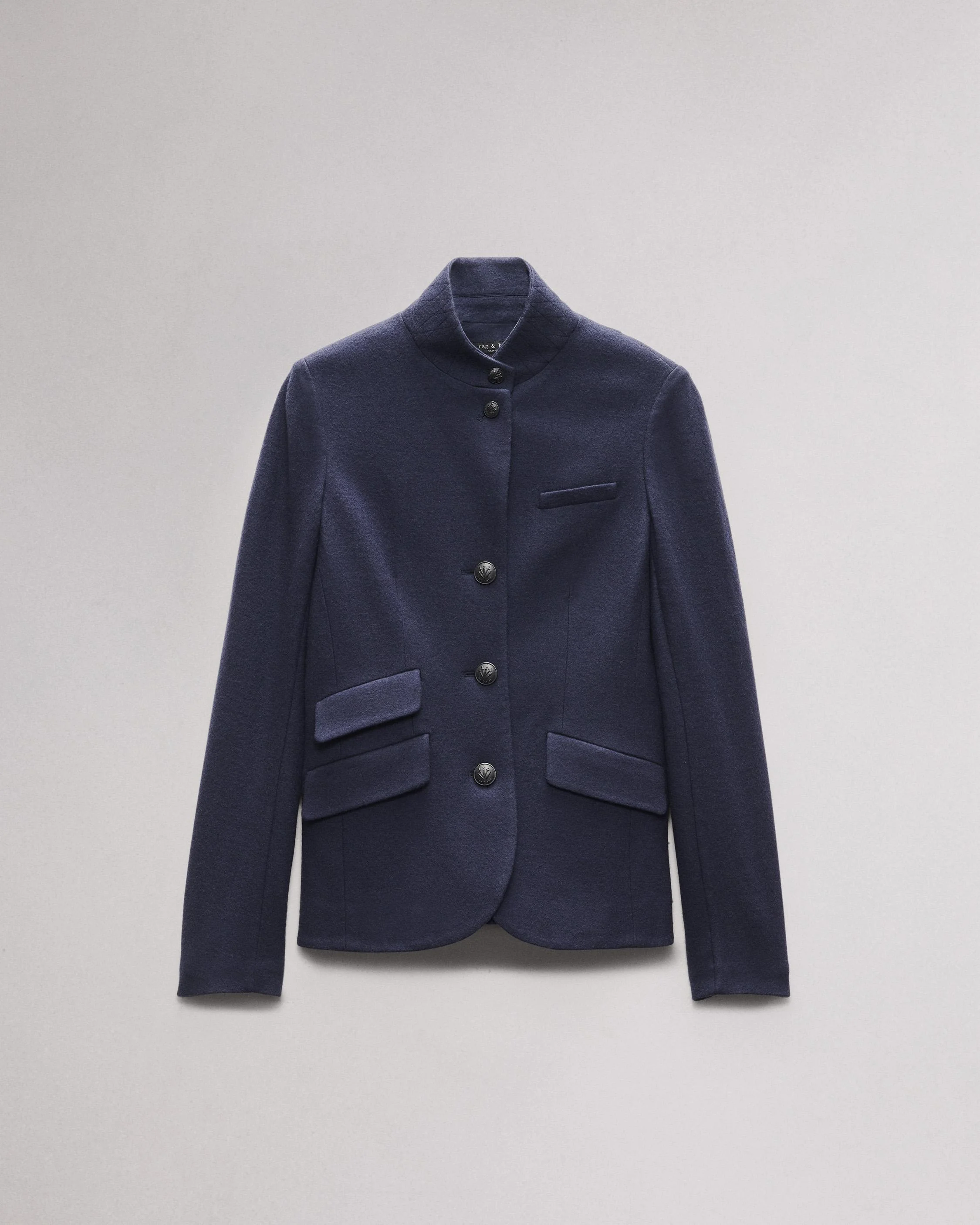 The Slade. A rag & bone favorite. Crafted from a Japanese wool suiting fabric with a classic, tailored fit. Featuring a stand collar, this style perfectly blends the refinement of a blazer with the utility of a military jacket. Complete with dagger buttons down the front. Size & Fit Slim fit Size 4: Front length 25 1/2", back length 24 1/2", chest 36 1/2", sleeve length 32 1/2" Features & Details 100% Wool Lining: 51% Viscose 49% Polyester Dry clean only. Metal logo buttons, zigzag stitch at collar Half lined, sleeves unlined Chest welt pocket, ticket pocket with flap, hip welt pockets with flaps Imported Product ID: WAW24F40220022