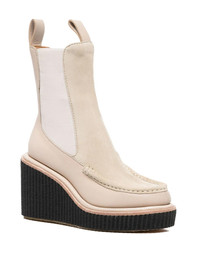 Sloane wedge Chelsea boots paloma beige suede leather panelled design elasticated side panels slip-on style double pull-tab at the opening tonal stitching round toe platform wedge Imported Composition Leather 100% SIZE & FIT Measurement HEEL 3.54 in(9 cm) HEIGHT 6.29 in(16 cm) Sole height 1.18 in(3 cm)
