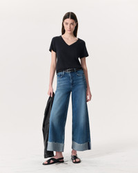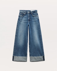 The Sofie. High-rise jeans that are rag & bone office favorites, with wide, cropped legs and a cut-and-cuffed hem. Crafted from our Vintage Stretch denim for a timeworn look with added comfort. In Atlantic, a medium indigo wash. Size & Fit High-rise wide leg, ankle length Size 26: 11 3/4" front rise, 33" inseam (before cuff), 29" inseam (after cuff), 25 1/4" leg opening Model is 5'10.5 wearing size 25 Features & Details 99% Cotton, 1% Elastane Vintage Stretch Denim in Atlantic, a medium indigo wash. Machine wash cold inside out with like colors, gentle cycle, do not use bleach, hang to dry, low iron if need, color may transfer. Zip fly with signature dagger button closure and metal rivets Five-pocket silhouette Imported Product ID: WDD25S2993VSCA
