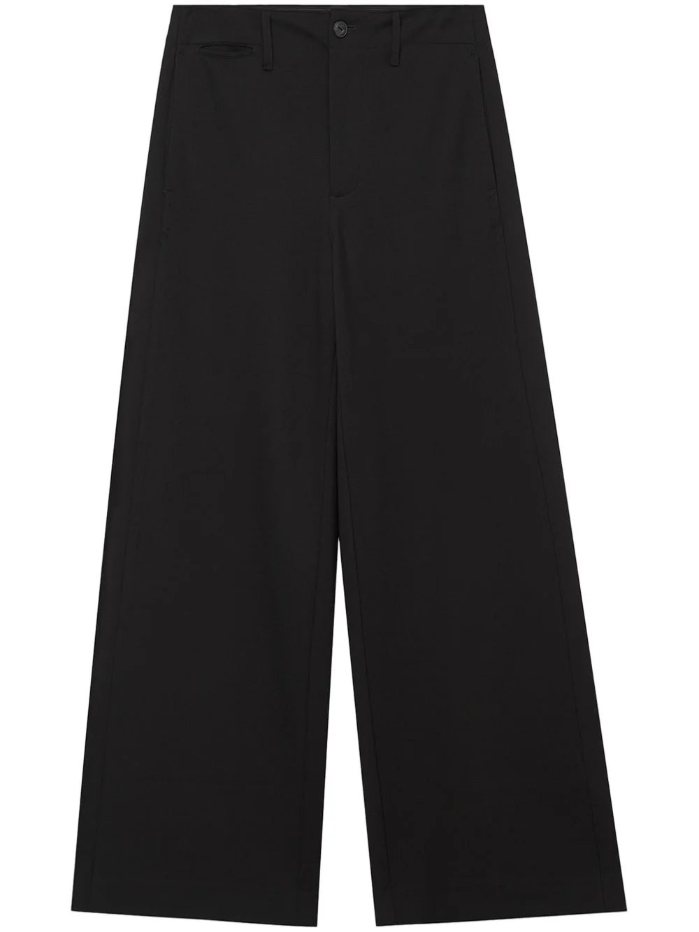 wide-leg trousers Highlights - Black - Front button fastening - Two side inset pockets - Two rear flap pockets - Belt loops Imported Composition Rayon 66%, Nylon 30%, Elastane 4%