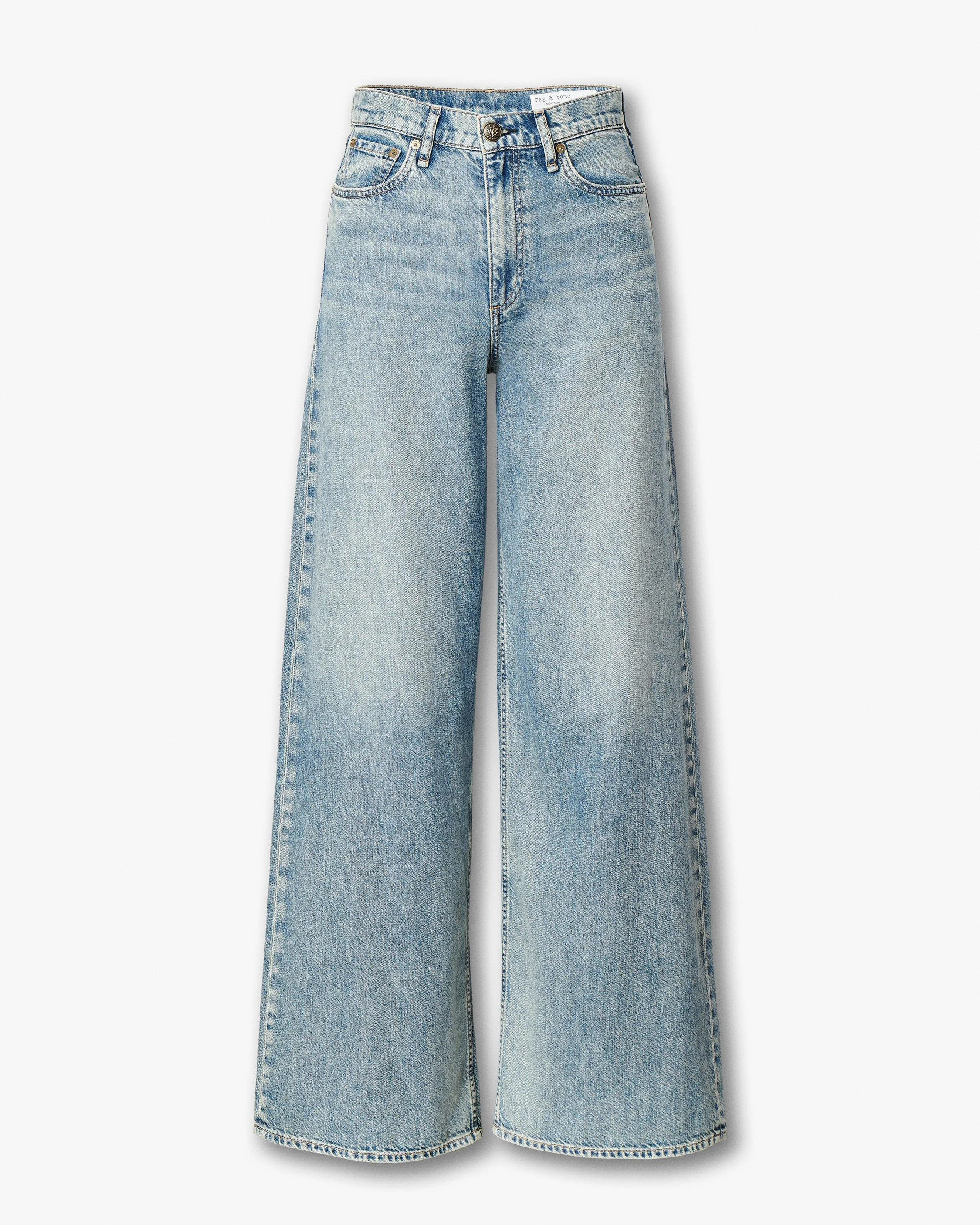 The Sofie. High-rise jeans with ultra-wide, palazzo-style legs. Cut to make an impression. Crafted from our Featherweight denim that's supremely soft and super light, with an easy drape. Feels airy & effortless. In Theo, a medium indigo wash. Size & Fit • High-rise • Full length • Super-wide leg • Fits true to size • Size 26: Rise 11.5", inseam 33", leg opening 25.25" • Model is 5'9" wearing size 24 Features & Details • 64% cotton, 36% lyocell • Featherweight Denim in Theo, a medium indigo wash • Zip fly with a button closure • Signature dagger button & rivets • Five-pocket silhouette • Machine wash cold inside out on delicate & lay flat to dry • Color may transfer • Imported Product ID: RJ2725H1FTH