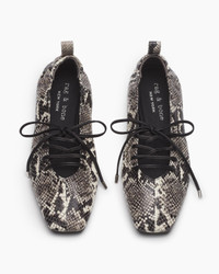 These aren't your studio slippers. Crafted from snakeskin-embossed leather and finished with metal-tipped laces, these sleek flats reimagine a timeless silhouette with a bit of modern attitude. Seemingly delicate in form, they surprise with their flexible soles, elasticated backs, and unexpectedly comfortable feel. Inside, ultra-thin OrthoLite® foam insoles provide the same soft cushioning, recovery, and support as your favorite sneakers, ensuring they feel just as great after a day at the office as they do dancing the night away. Size & Fit • 0.2'' polished leather heel Features & Details • Upper: 100% cow leather • Lining: 100% sheep lining • Outsole: 100% cow leather • Counter: 100% kid suede • Lace-up closure • Top lace (closest to the toe) is fixed and cannot be adjusted or removed • Care: Professional leather cleaner • Imported Product ID: RP6625F537U