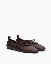 These aren't your studio slippers. Crafted from buttery leather and finished with metal-tipped laces, these sleek flats reimagine a timeless silhouette with a bit of modern attitude. Seemingly delicate in form, they surprise with their flexible soles, elasticated backs, and unexpectedly comfortable feel. Inside, ultra-thin OrthoLite® foam insoles provide the same soft cushioning, recovery, and support as your favorite sneakers, ensuring they feel just as great after a day at the office as they do dancing the night away. Size & Fit • 0.2'' polished leather heel Features & Details • Upper: 100% leather • Lining: 100% sheep lining • Outsole: 100% cow leatherr • Lace-up closure • Top lace (closest to the toe) is fixed and cannot be adjusted or removed • Care: Professional leather cleaner • Imported Product ID: RP6625F537L