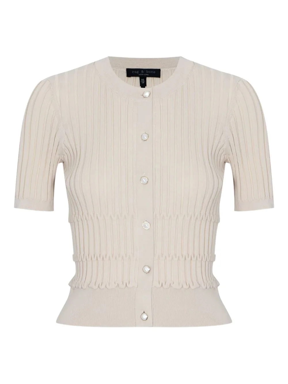 Stacey ribbed-knit cardigan Highlights - White - Short sleeves - Ribbed knit - Button front fastening - Straight hem Imported Composition Cotton 82%, Polyamide 18% Washing instructions Read Manufacturer Guidelines