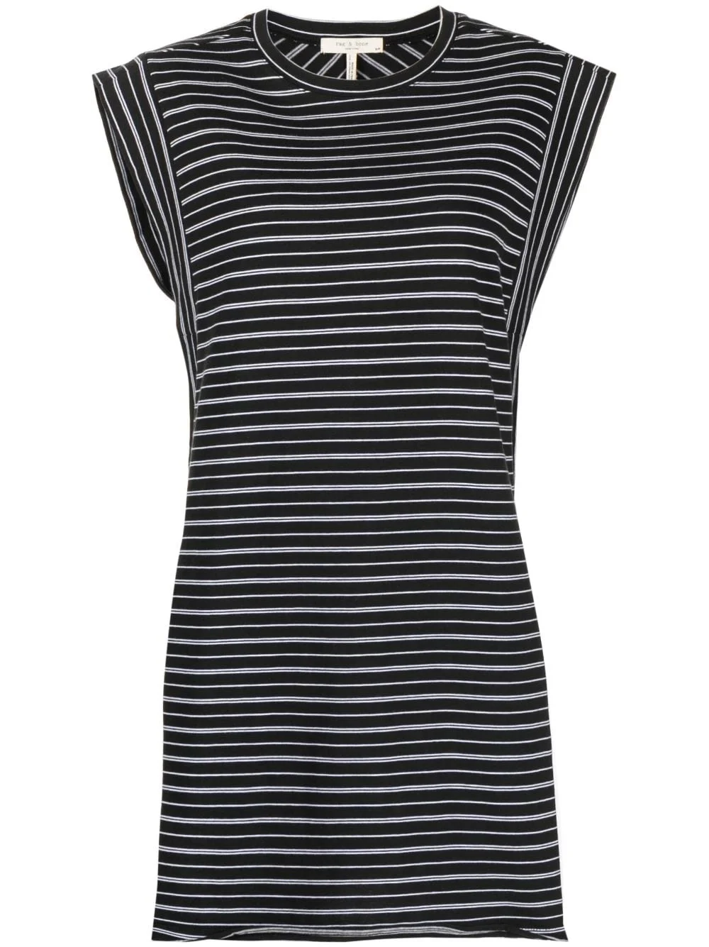 stripe-print organic-cotton dress Highlights - Black/white - Organic cotton - Rolled trim - Stripe print - Round neck - Sleeveless - Short length Imported Composition Body: Organic Cotton 100% SIZE & FIT Model measurements Height 5 ft 10 in(1.78 m) Bust/Chest 30.31 in(77 cm) Hips 34.64 in(88 cm) Waist 24.01 in(61 cm) FittingInformation Designed to be unstructured, offering a loose fit throughout Made from a midweight non-stretch fabric, this piece offers minimal elasticity when worn This piece fits true to size – take your usual size