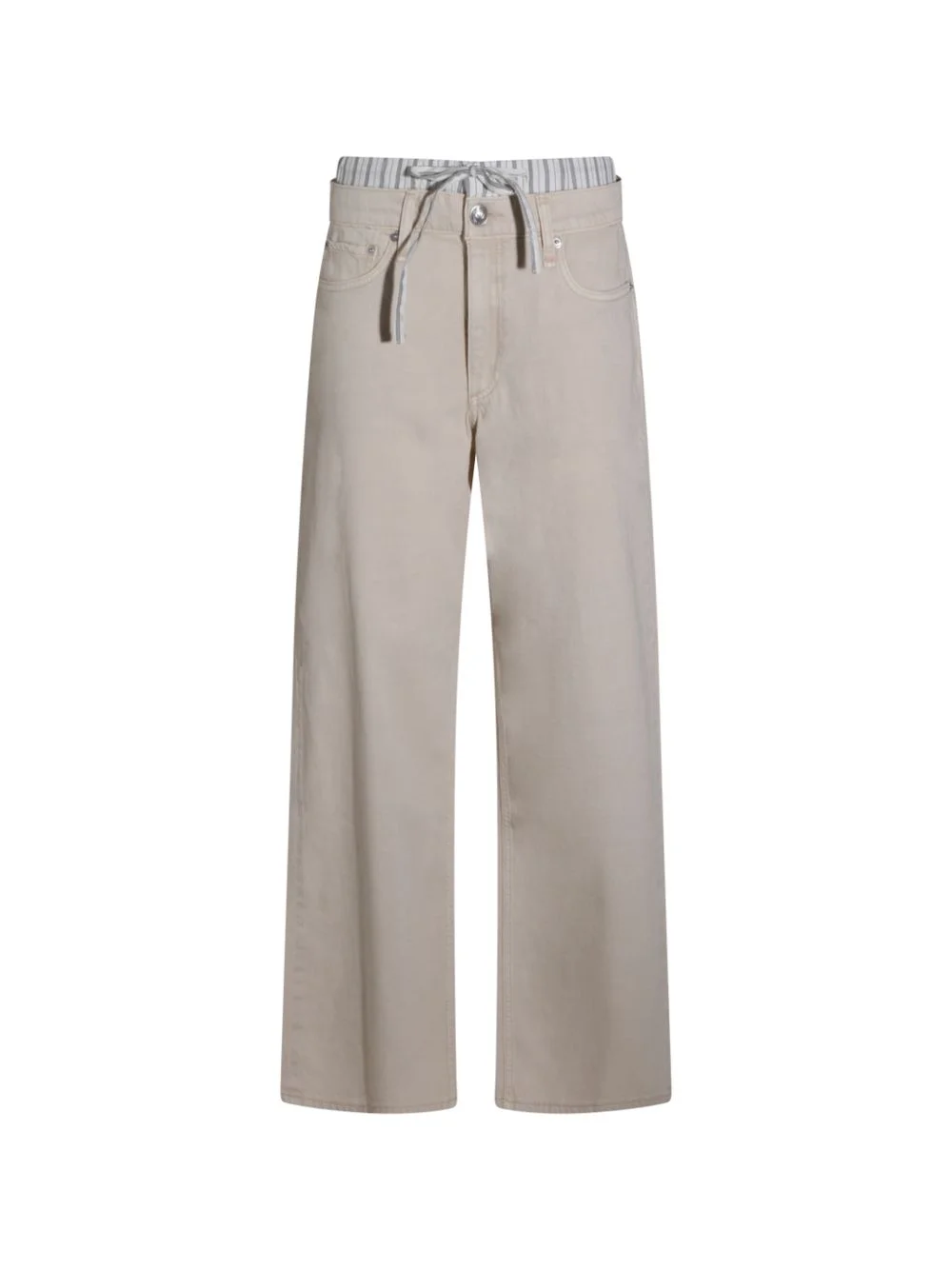 striped-waist drawstring jeans Highlights - Sand - Striped trim - Drawstring detail - Silver-tone hardware - Five pockets Imported Composition Cotton 64%, Lycra 36% Washing instructions Read Manufacturer Guidelines