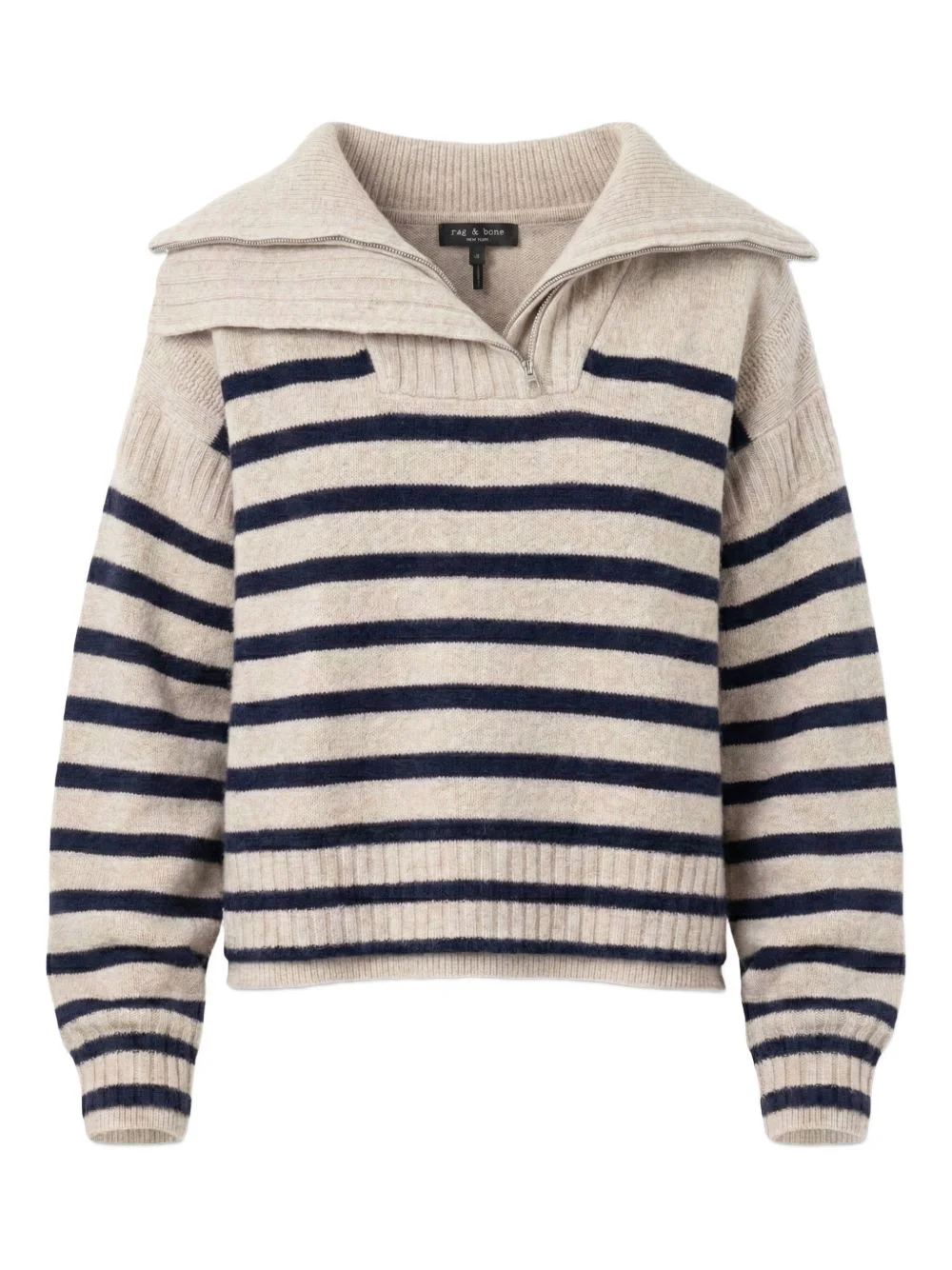 striped zipped sweater Highlights - Beige - Striped - Zip fastening - Ribbed trims - Collar Imported Composition Wool 100% Washing instructions Read Manufacturer Guidelines