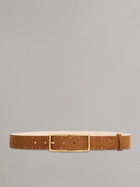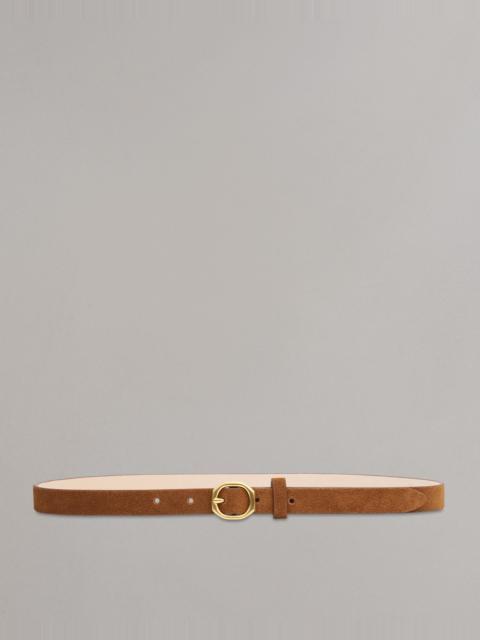 Made from soft suede, this wear-with-anything belt is secured with a rounded geometric buckle. Size & Fit Width: 1.3" Length: XS 30, S 32", M 36", L 39.5" Features & Details 100% Cow Suede Nubuck lining Professional leather cleaner Silver hardware Buckle closure Silver hardware Imported Product ID: WJW24HB1017SU17
