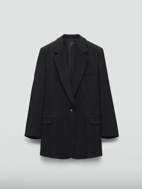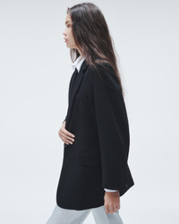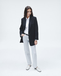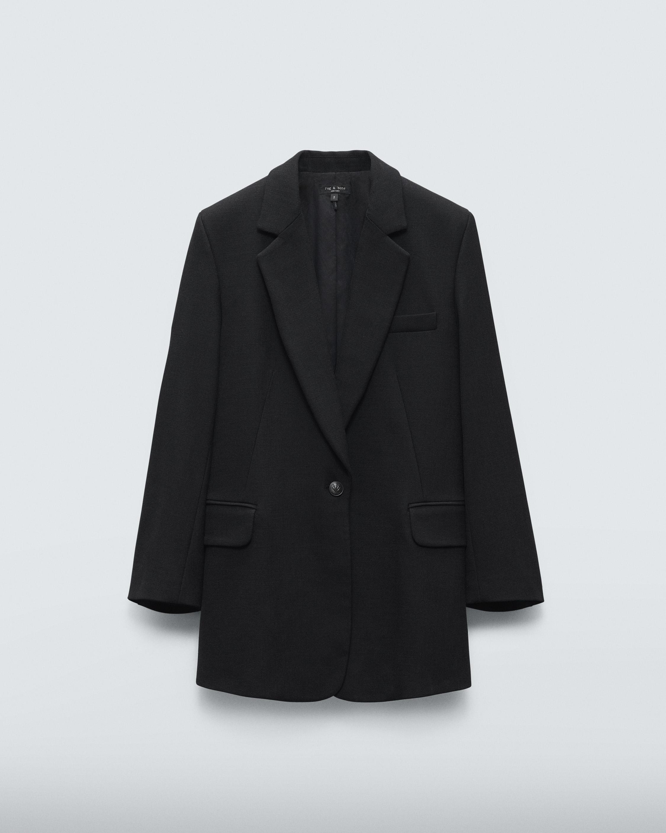 The Suzanne. A modern approach to tailoring that feels at once fresh and timeless. It is cut for a slightly loose fit that falls effortlessly below the hip from a blended viscose. Size & Fit Relaxed fit, hits below the hip Size 4: 40" chest, 37 1/2" waist, 32 1/2" front length, 33" sleeve length Model is 5'11" wearing a size 2 Features & Details 67% Viscose 31% Polyester 2% Elastane Body lining: 75% Cotton 25% Polyamide Sleeve lining: 53% Acetate 47% Viscose Dry clean only Metal dagger buttons, felt undercollar, fully lined, stripe sleeve lining Chest welt pocket, hip besom pockets with flap Imported Product ID: WAW24S40217821