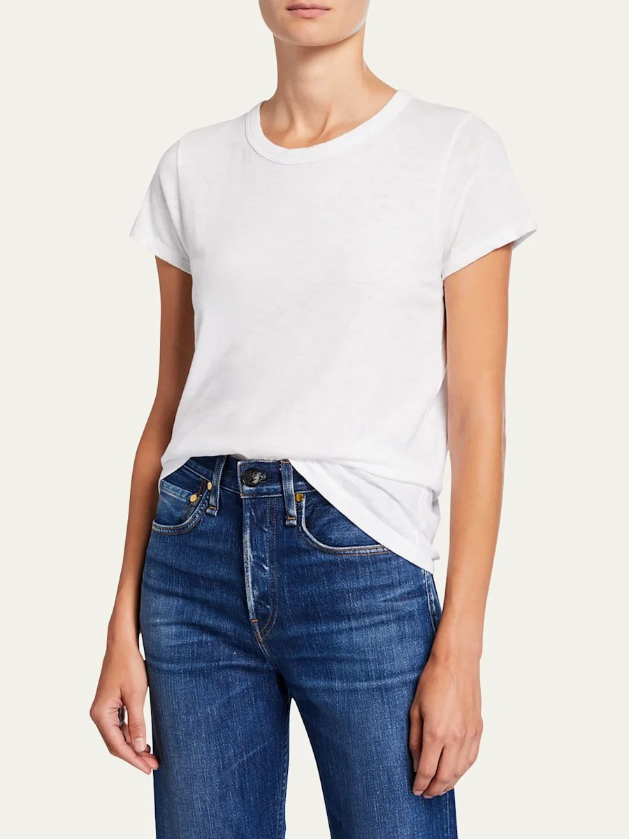 Rag & Bone classic slub jersey T-shirt. Approx. 23.5"L from shoulder to hem. Signature seam down center back. Crew neckline. Short sleeves; 5.5"L. Slim silhouette. Pullover style. Cotton. Machine wash. Imported. Online Inquiries: BGS21_TUUY4| Store Inquiries: #2107674