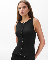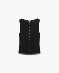 Looks put-together. Wears like a tank. A button-up vest knit from two types of lightweight, super-soft stretch yarn. The bateau neckline and streamlined fit make it just as sharp solo as it is under a jacket. Size & Fit • Slim fit • Fits true to size • Size Small: Body length 21", chest 27.5", sweep 28.5" • Model is 5'10" wearing size small Features & Details • 48% rayon, 48% polyester, 4% spandex • Machine wash cold on delicate & tumble dry low or dry clean • Denim rag & bone button closure • Imported Product ID: RE6925FT3LW