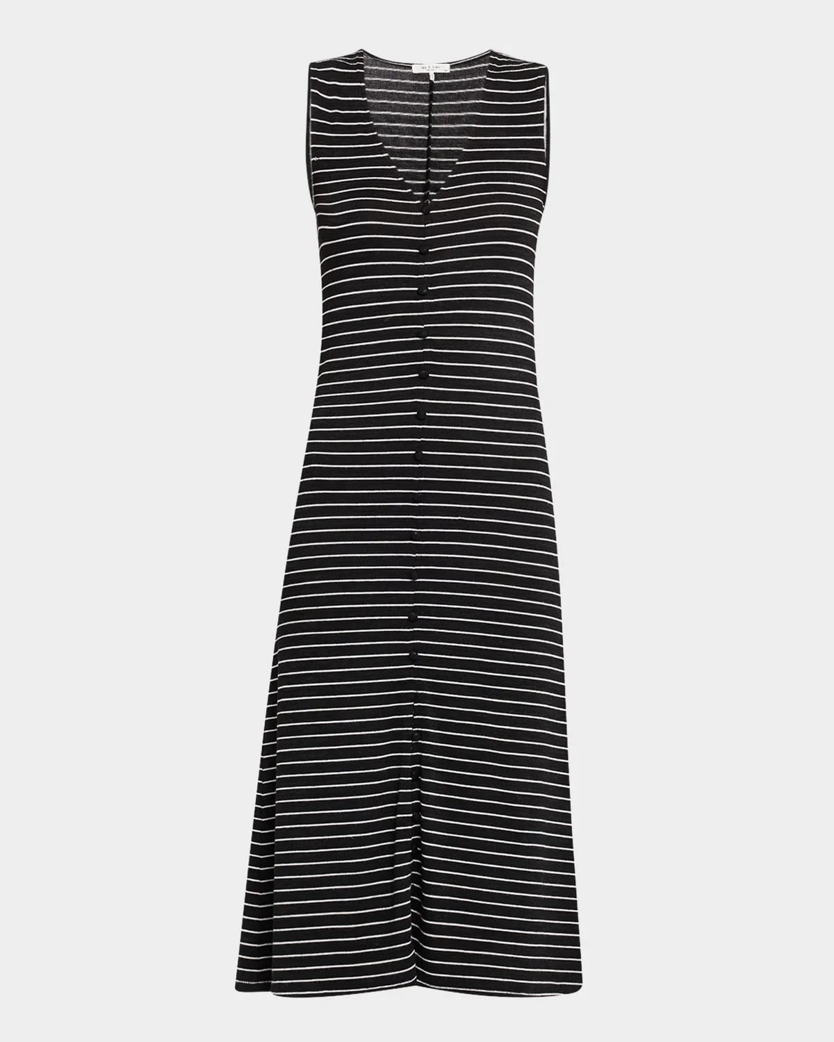 - Rag & Bone striped knit midi dress finished with a button-front - V neckline - Sleeveless - Tank silhouette - Hem falls below the knee - Proviscose® rayon/polyester/spandex - Machine wash cold or dry clean - Imported
