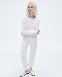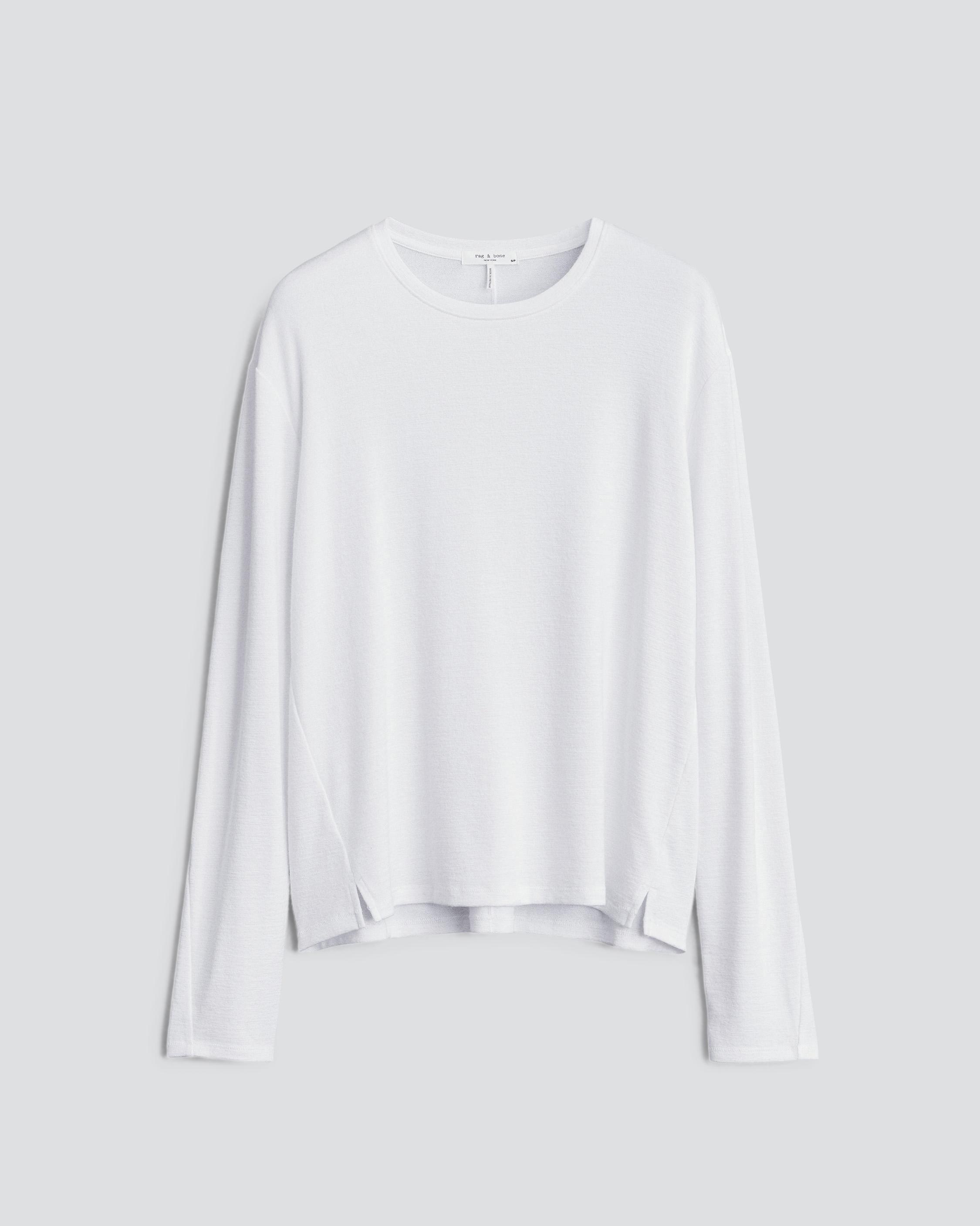 We took our classic Knit Long Sleeve Tee and updated it with a straight hem for a modern, relaxed fit. Woven in a rayon blend for a distinctly soft feel that makes this the perfect layering piece. Style with virtually anything in your closet. Size & Fit Slim fit Size Small: Center back length from center back neck seam 23 1/2", chest 40", sweep 44", sleeve length 32 3/8" Model is 5'11" wearing a size small Features & Details 48% Rayon, 48% Polyester, 4% Spandex Machine wash cold with like colors, gentle cycle, do not bleach, lay flat to dry, cool iron if needed Imported Product ID: WCC23ST082C782