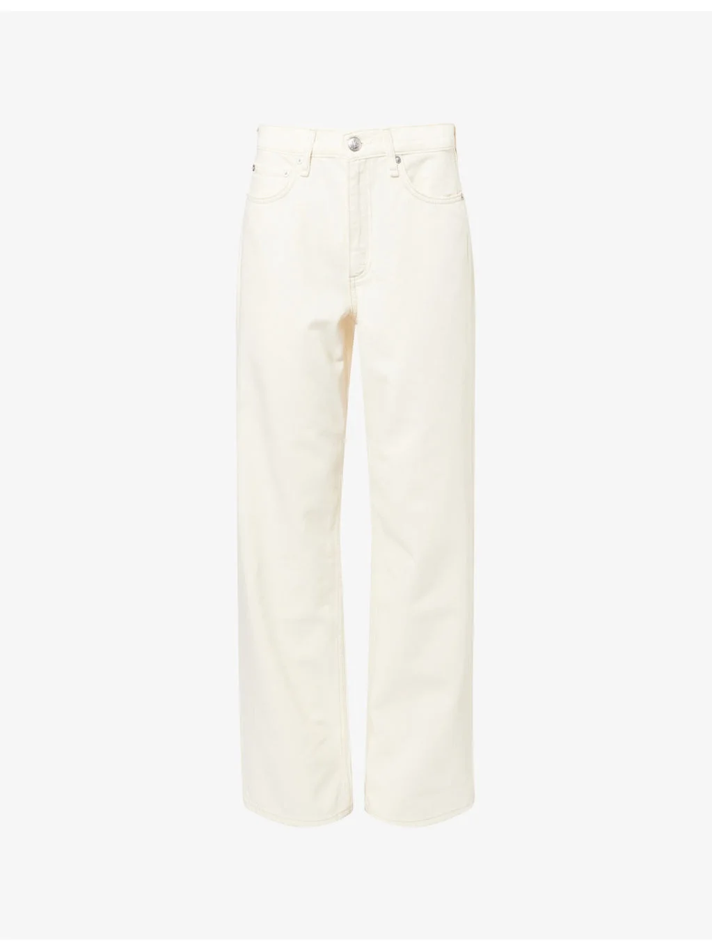 PRODUCT DETAILS - rag & bone denim jeans - 100% cotton - Button and zip-fly fastening - Relaxed fit, high rise, straight leg, structured waistband, belt loops, classic five pockets, branded hardware, V-shaped yoke at back, brand embroidery at back pocket - Machine wash at 30°C - True to size - Size 26: rise 12in / 31cm, inside leg 30in / 76cm, leg opening 18in / 46cm - Model is 5ft 10in/1.78m and wears a size 26 - Midweight, non-stretch Ref: R04467479
