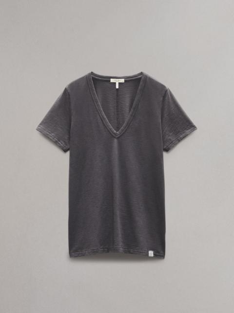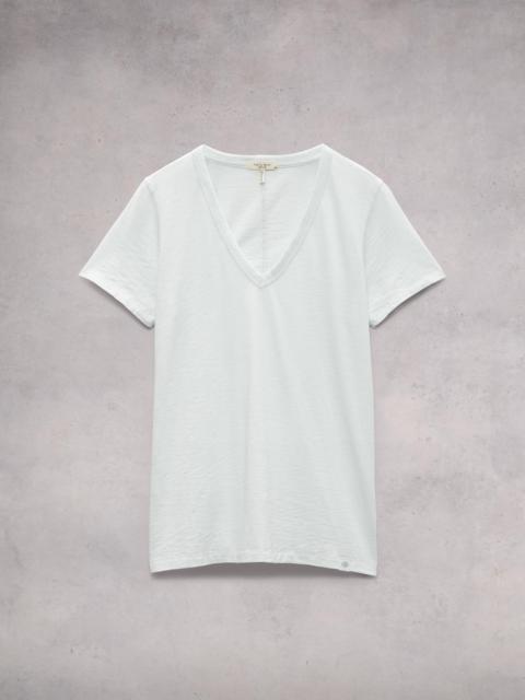 Our take on the essential V-neck T-shirt is crafted from organic Peruvian slub cotton and cut for a classic, tailored fit. Size & Fit Classic fit Size Small: Center back length 25", chest 34 1/2", sweep 38", sleeve length 14 1/4" Model is 5'9" wearing a size small Features & Details 100% Cotton Machine wash cold, gentle cycle, go not bleach, tumble dry low, low Iron if needed or dry clean Made in Peru Product ID: WCC21ST033CH33