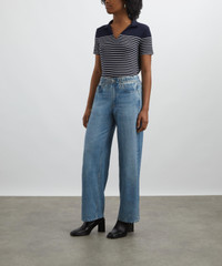 DETAILS Polo top Stretch knit Stripe pattern Regular fit Notched collar Short sleeves SIZE & FIT Model is 175.5cm/5'9"; Chest: 81.5cm; Waist: 64.5cm; Hip: 89cm and wears a size S COMPOSITION & CARE 48% Rayon; 48% Polyester; 4% Spandex Machine wash cold, inside-out with similar colors