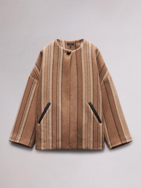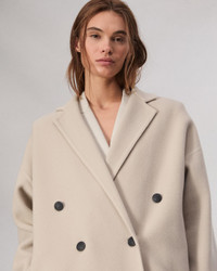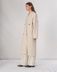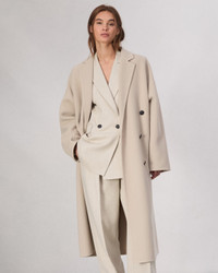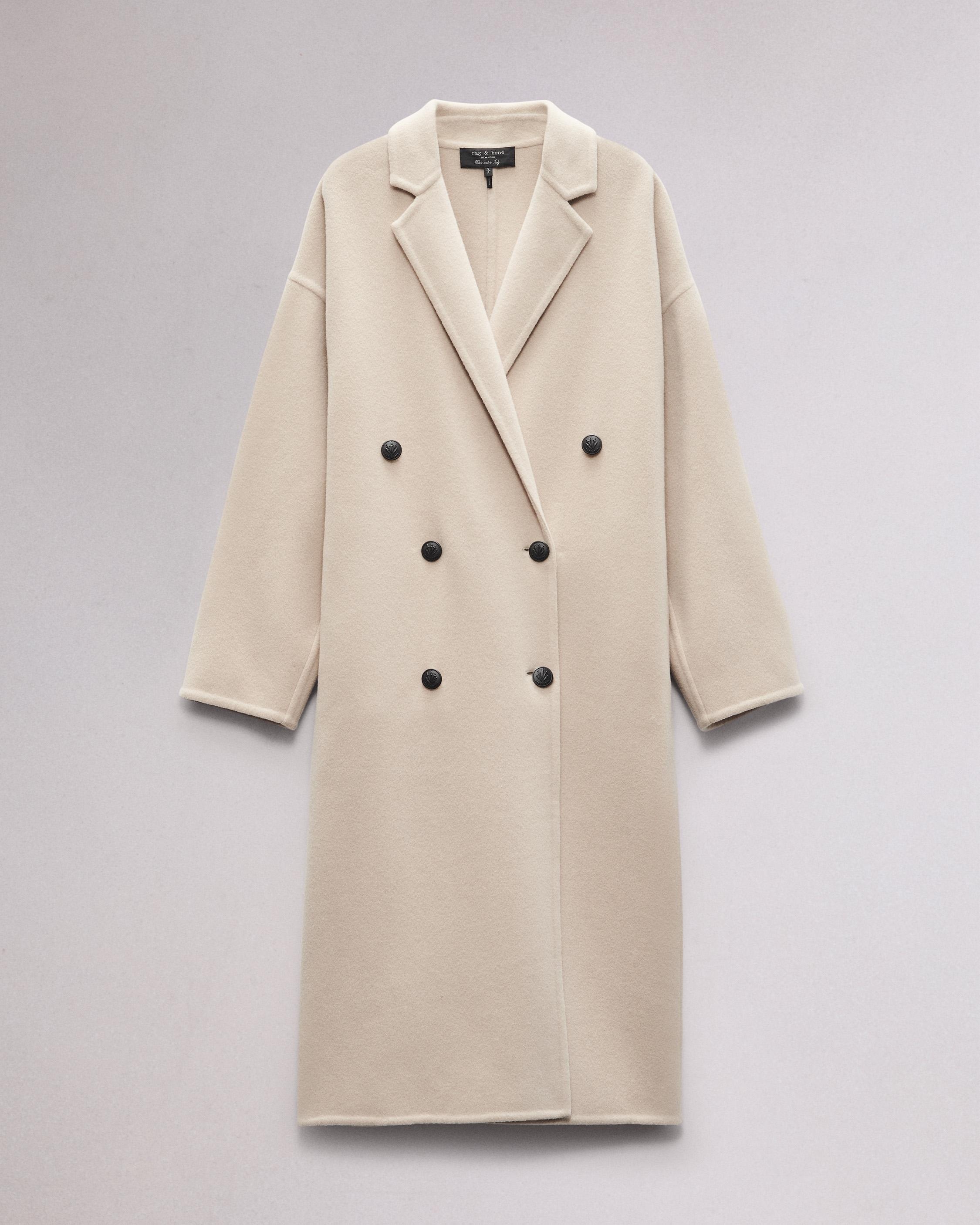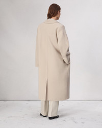 The Thea. Our longline coat is cut with a relaxed silhouette with substantial notched lapels in an Italian double-faced wool-blend. Size & Fit Relaxed fit Size Small: Front length 48 1/2", back length 46 3/4", chest 47", sleeve length 32 1/2" Model is 5'10.5" wearing size small Features & Details 75% Virgin Wool 25% Polyamide Dry clean only Metal logo buttons, splittable construction Unlined Side seam pockets Imported Product ID: WAW24F2026VR26