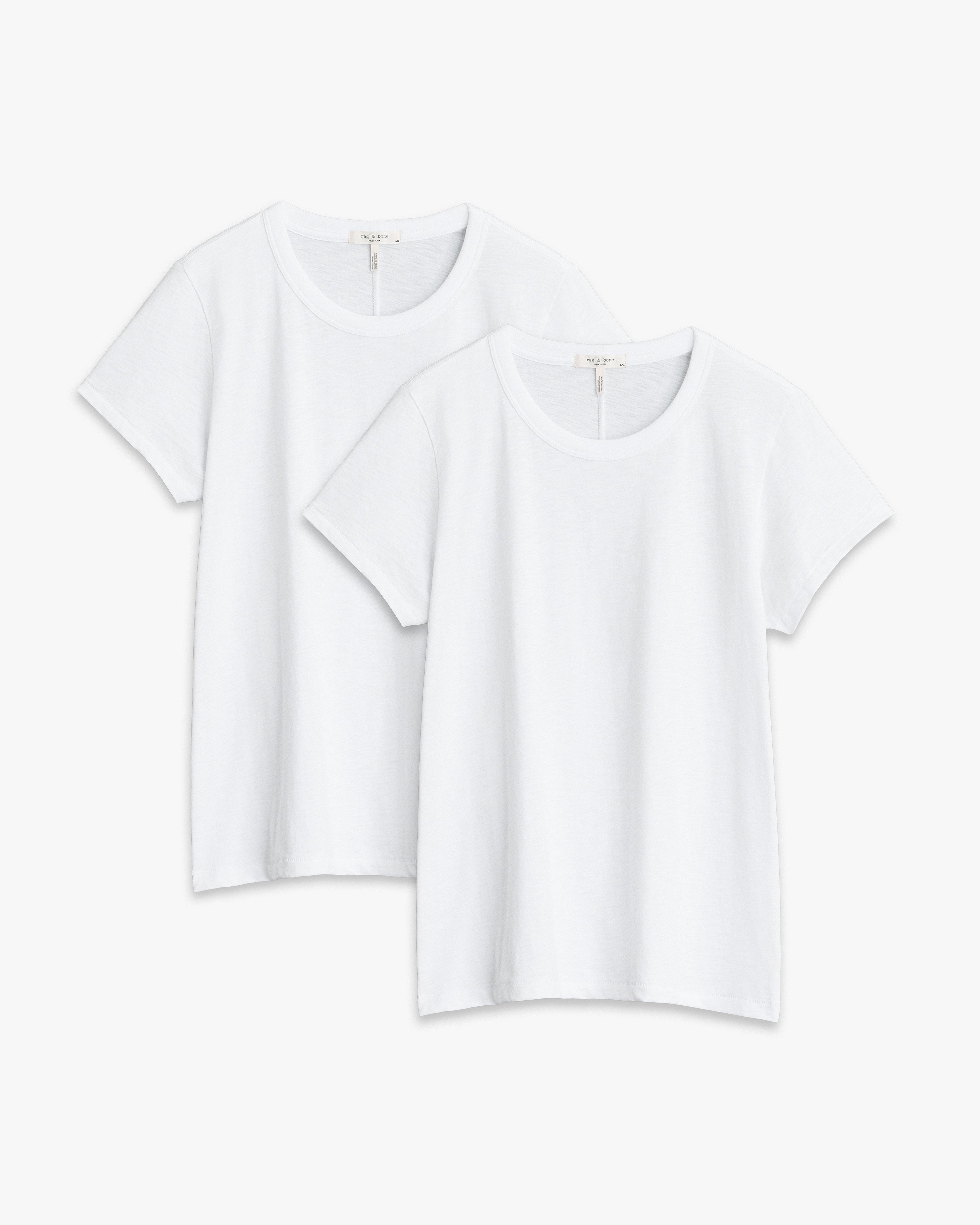 The perfect tee. Cut for a classic, tailored fit, our essential short-sleeve T-shirt is crafted from organic Peruvian slub cotton with a heathered look and subtle texture. Each pack includes one tee in black and one in white. Size & Fit • Classic fit • Fits true to size • Size small: Body length 24.25", chest 33.5", sweep 36", sleeve length 12.25" • Features & Details • 100% cotton • Logo tab at the left hem • Machine wash cold on delicate & tumble dry low • Made in Peru Product ID: RE4N25HT3SW