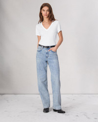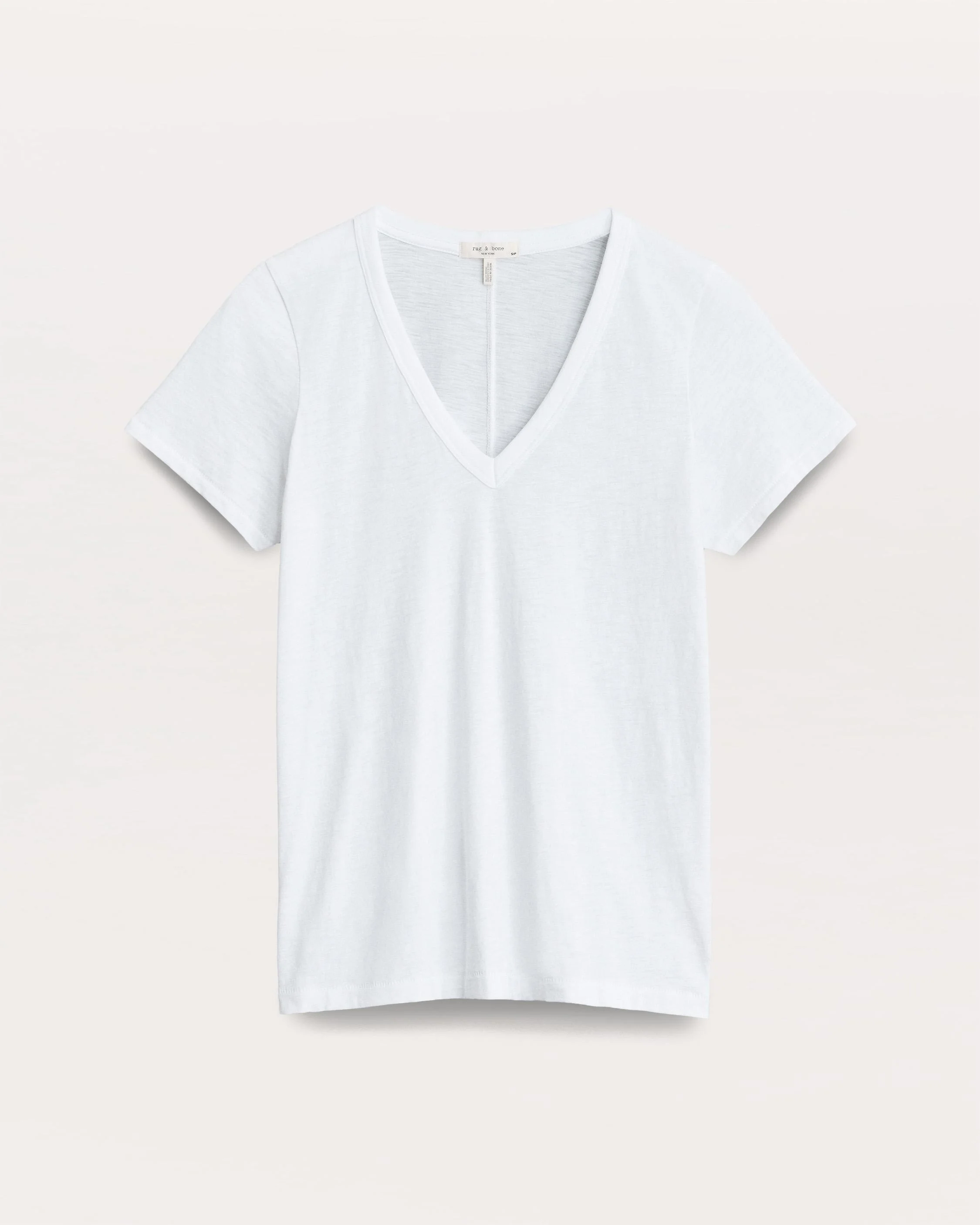 A timeless V-neck tee with a relaxed fit. Easy to wear with denim and sneakers or style under suiting for a modern look Size & Fit Size small: length 24 1/4", sweep 36", sleeve length 12 3/8" Model is 5'11" wearing a size small Features & Details 100% Pima cotton slub jersey Classic bias rib binding at neck Signature railroad stitch detailing throughout Imported Product ID: W272C34CH
