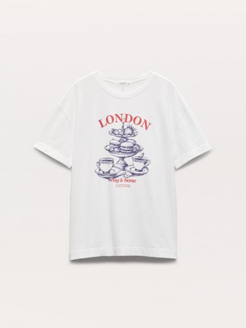 Golden hour. Like a wearable postcard from Los Angeles, this laid-back, oversized tee captures the coastal cool of Venice Beach at sunset with a digital print of faded skies, palms, and streets illustrated by our in-house studio. It's cut from Peruvian cotton jersey that feels soft & smooth. Take your typical size for its intended looser look, or size down for a closer fit. Size & Fit • Oversized boyfriend tee • Fits large to size. Consider sizing down for a closer fit. • Size Small: body length 26.5" | chest 40.5" | sweep 41.5" | sleeve length 7" • Model is 5'11" wearing size small Features & Details • 100% cotton • Rb Venice graphic custom-illustrated by rag & bone studio • Machine wash cold on delicate & tumble dry low or dry clean • Made in Peru Product ID: WCC25PT029MI30