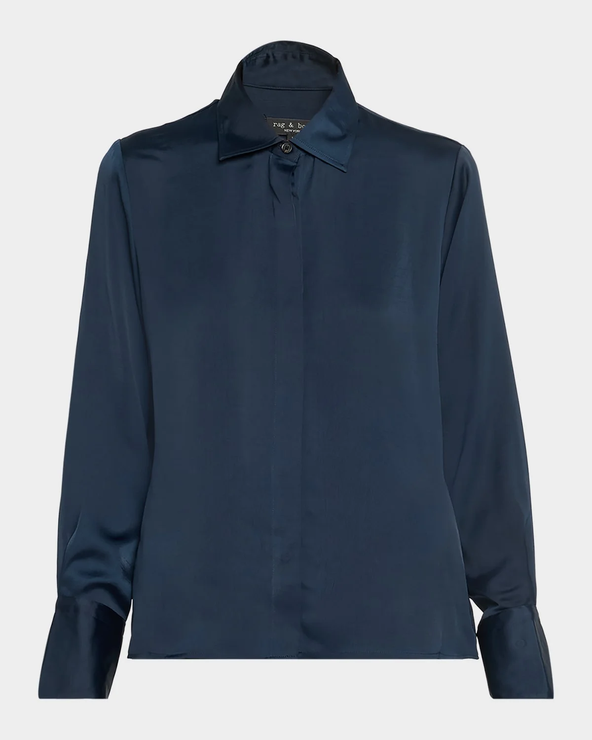Crafted from silky satin, the "Venus" blouse by Rag amp; Bone features a lacetrim cami underneath, adding a flirty touch that can transform any look. Point collar Long sleeves with button cuffs Classic fit Hem falls to the hip Buttonfront Polyester Dry clean only Imported