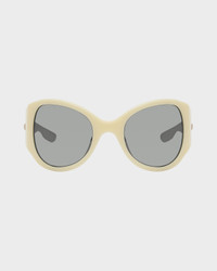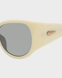 An oval silhouette with an acetate frame and 100% UV protection. Size & Fit 56mm x 24mm x 115mm Features & Details Acetate 100% UV Protection Imported Product ID: RNB6004S