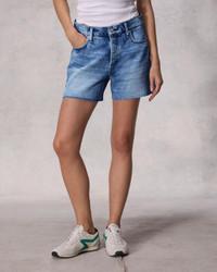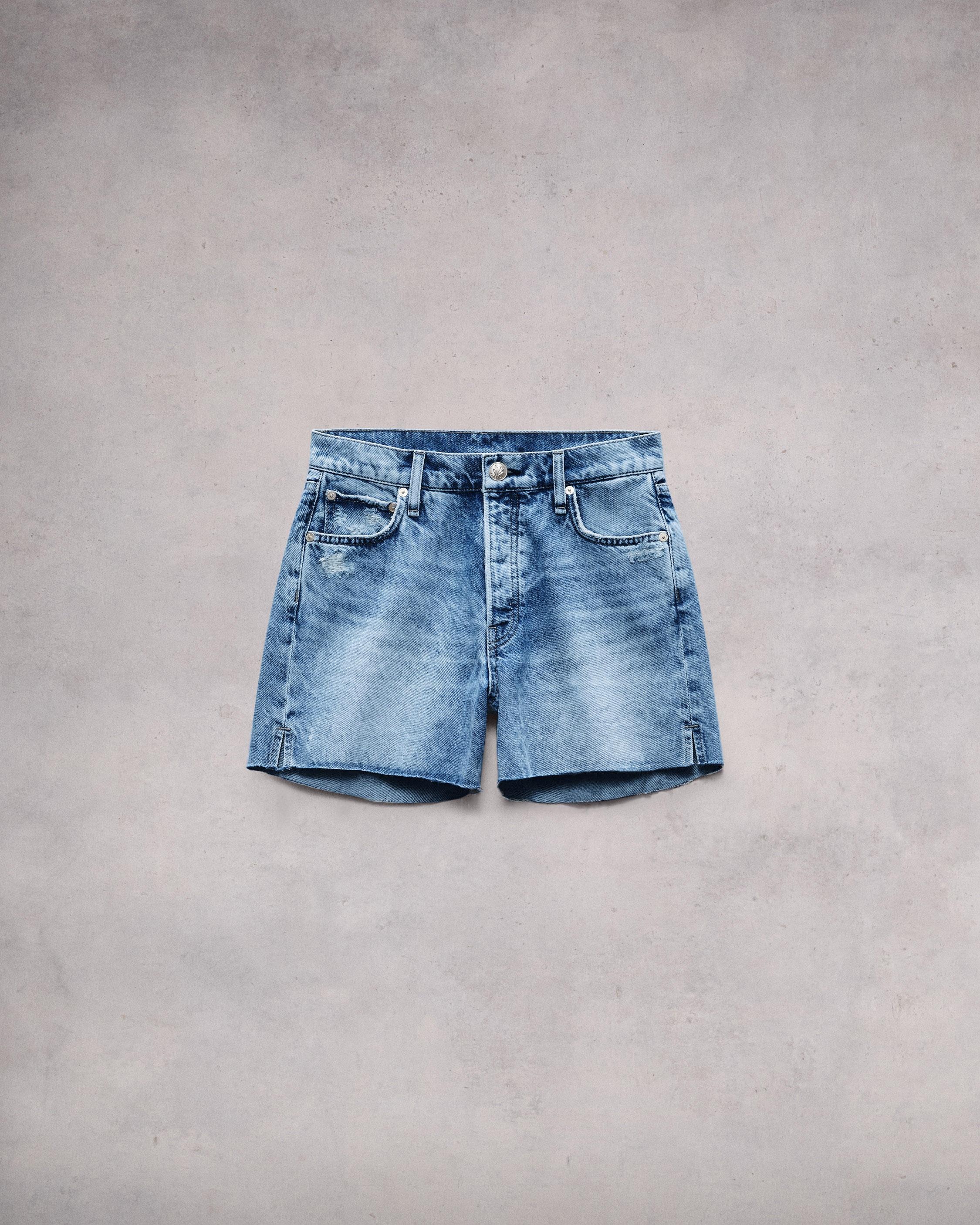 The perfect cut-off short is here. This style is cut from our Lightweight Rigid non-stretch denim that provides structure, but breaks in over time for a soft and comfortable feel. Crafted with a 4" inseam and a button fly. In Noelle, a medium indigo wash and finished with a raw hem. Size & Fit High-rise, midi length 11.38" rise, 4" inseam, 23.5" leg opening Model is 5'7.5" wearing a size 25 Features & Details 100% Cotton Machine wash cold, gentle cycle, inside out with like colors, hang to dry, low iron if needed, color may transfer Metal rivets Signature dagger shank button at center front with a button closure Five- pocket silhouette Imported Product ID: WDD24P1924WANO