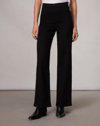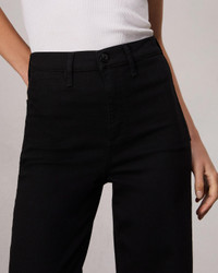 The Hadley. Our new high-rise, figure-flattering jeans with sculpted legs that gradually widen. Crafted from our all-new Epic denim that's our most stretchy yet, for ultimate flexibility and comfort wherever life takes you. (Pro tip: Size down if you're between sizes.) In pure Black. Size & Fit Mid-rise, wide leg, full length Size 26 : 11 1/2" Front Rise, 32" Inseam, 22" Leg Opening Model is 5'10" wearing a size 25 Features & Details 92% Cotton 6% Lyrca 2% Lyocell Epic, Black Machine wash cold inside out with like colors, gentle cycle, do not use bleach, hang to dry, low iron if need, color may transfer Signature dagger shank button at center front with a zipper fly, metal rivets, clean hem Center front shank button and zip closure Back pockets Imported Product ID: WDD24H3002EPBL