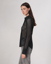 The Yvette. A romantic take on staple shirting�ours is buttoned up in delicate lace. Size & Fit Classic fit Size Small: Center back length 26 1/2", chest 36", sweep 40", sleeve length 34" Model is 5'10.5" wearing size small Features & Details 100% Viscose Dry clean only Decorative heat press studs, buttons at cuffs, unlined Imported Product ID: WAW24FA028VR28
