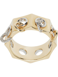 Modified band ring in 14k gold. · White gold grommets at length · Fixed hoops with pave-set 0.045 cttw diamonds · Hallmarking at inner band Supplier color: 14k yg/Wg 14k gold, diamond. Made in Thailand 252333F011002