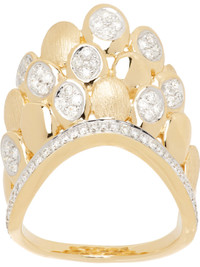 Modified band ring in 14k gold. · White rhodium detailing throughout · 0.35 cttw diamonds · Scalloped construction with prong-set diamonds · Pave-set diamonds at length of band · Logo stamp at inner band Supplier color: 14k 14k gold, diamond, rhodium. Made in Thailand 252333F011005