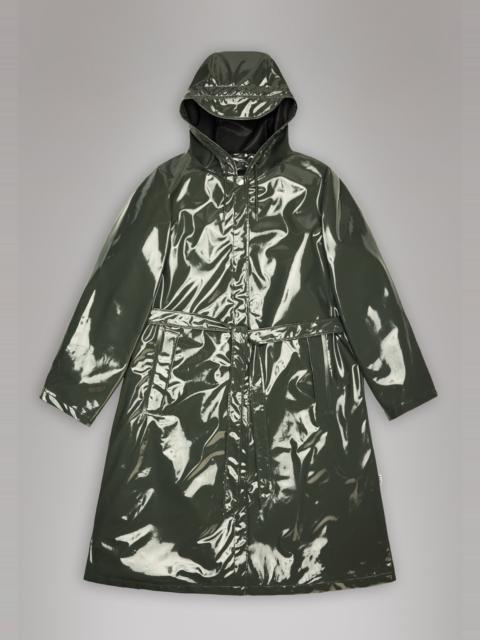 A-line Jacket Longer is a women’s raincoat characterized by its A-shaped silhouette and belt that elegantly accentuates the waist. This jacket is a longer version of Rains’ A-shaped womens raincoat. It features a drawstring hood with built-in cap, side pockets, hidden snap buttons for closure and adjustable snap cuffs. A-line Longer Jacket is completed with a belt to accentuate the waist for an individually fitted silhouette. The finish is soft with a lightweight feel and elegant drape. This waterproof women's coat is cut from Rains’ signature PU fabric and features welded seams making the jacket both resistant to water and wind. Underarm eyelets ensure ventilation for breathable comfort. SKU: 12040\129 Details Composition: 100.00% PES (Polyester) Water column: 5000 mm Windproof: Protection against windchill Fit: Longer Weight: 20.5 oz Features: