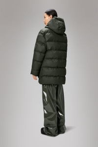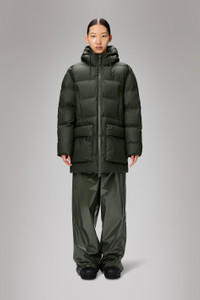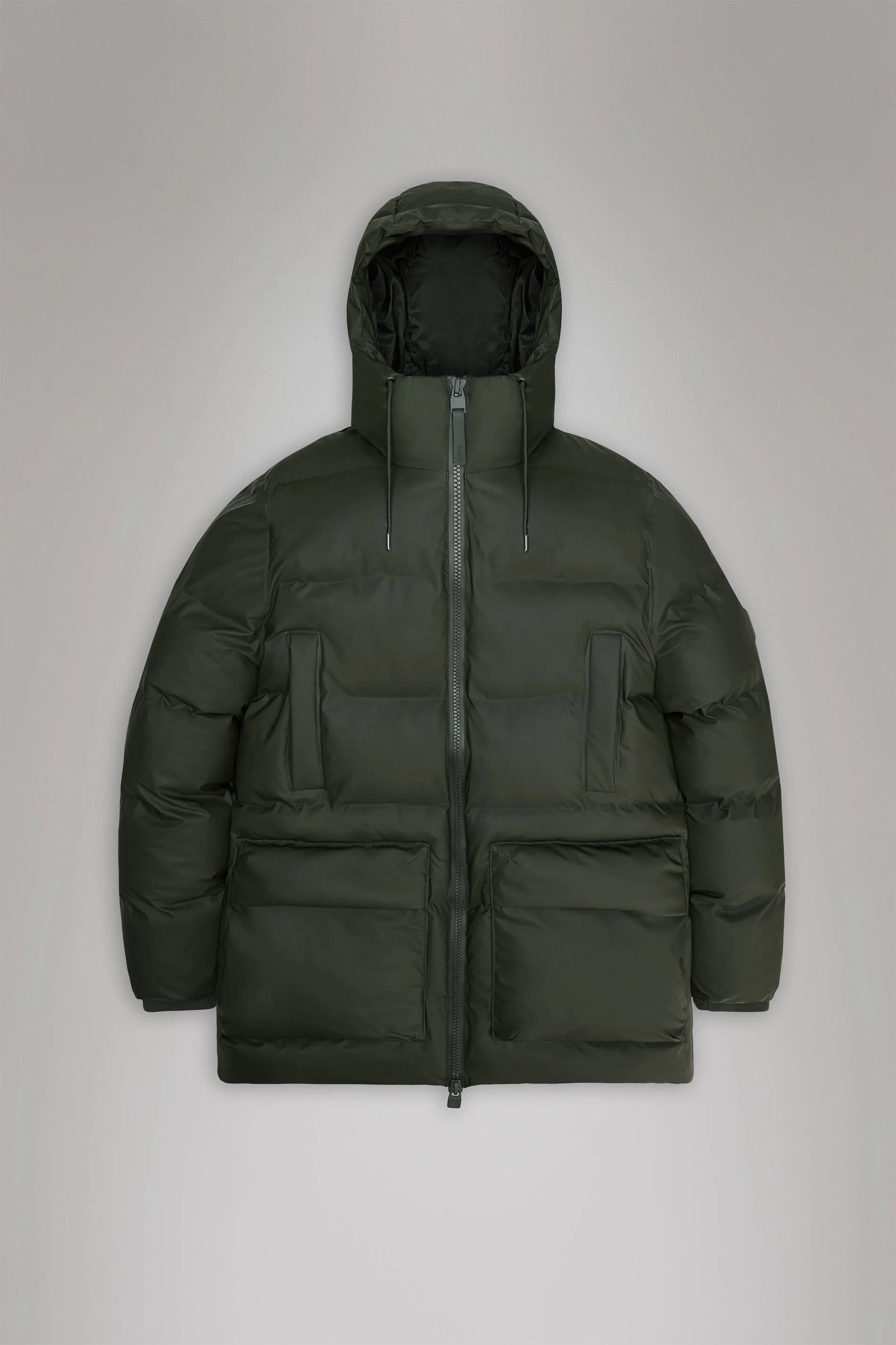 Alta Long Puffer Cargo Jacket is a waterproof winter jacket. Characterized by outside pockets and an easy-to-wear puffer aesthetic. The long and puffed jacket is designed with an inside zipped pocket, welt pockets at chest and outside zipped cargo pockets with side entrance and fleece lining. As part of the Alta series, the look features refined silhouettes, signature chamber widths and pared-back details. Finished off with ribbed storm cuffs and an insulated hood with drawstring. This elevated puffer is built on woven chamber technology and cut from Rains’ signature PU fabric with welded seams.The finish is lightweight with a smooth feel. SKU: 15210\03 Details Composition: 100.00% PES (Polyester) Water column: 5000 mm Breathability: 3.000 g/m2 water vapor transmission Windproof: Protection against windchill Fit: Long Weight: 43.7 oz Features - Waterproof signature PU fabric - Insulated hood with drawstring - Ribbed storm cuffs - Welt pockets with fleece lining at chest - Outside zipped cargo pockets with side entrance and fleece lining - Inside zipped pocket - Welded seams - Rubberized weatherproof hardware - Chin guard
