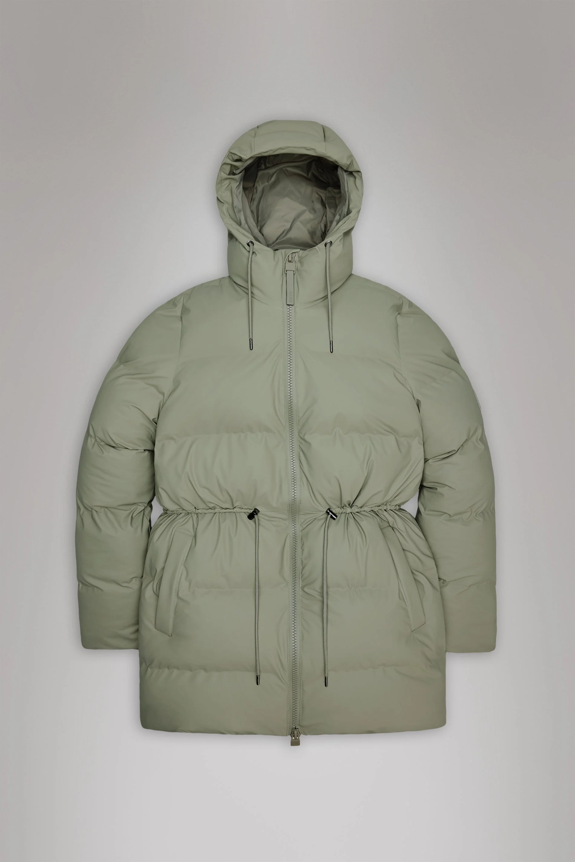 Alta Long Puffer String Jacket is a waterproof winter jacket. Characterized by refined silhouettes and an easy-to-wear puffer aesthetic. The Alta Long Puffer String Jacket is designed with an inside zipped chest pocket and concealed fleece-lined side pockets. The style is finished with a drawstring waist for a more shaped silhouette. As part of the Alta series, the look features signature chamber widths and pared-back details. Topped by an insulated hood with drawstring to keep you warm and comfortable in the coldest climates. This elevated puffer is built on woven chamber technology and cut from Rains' signature PU fabric with double welded seams. The finish is lightweight with a smooth feel. SKU: 15160\108 Details Composition: 100.00% PES (Polyester) Water column: 5000 mm Breathability: 3.000 g/m2 water vapor transmission Windproof: Protection against windchill Fit: Long Weight: 40.6 oz Features: