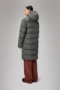 Alta Longer Puffer Jacket is a waterproof winter jacket. Characterized by refined silhouettes and an easy-to-wear puffer aesthetic. The Alta Longer Puffer Jacket is designed with an inside zipped chest pocket and concealed fleece-lined side pockets. As part of the Alta series, the look features signature chamber widths and pared-back details. The longer silhouette is finished off with an insulated hood with drawstring, keeping you warm and comfortable in the coldest climates. This elevated puffer is built on woven chamber technology and cut from Rains' signature PU fabric with double welded seams. The finish is lightweight with a smooth feel. SKU: 15130\13 Details Composition: 100.00% PES (Polyester) Water column: 5000 mm Breathability: 3.000 g/m2 water vapor transmission Windproof: Protection against windchill Fit: Longer Weight: 54.3 oz Features - Waterproof signature PU fabric - Insulated with signature chamber technology - Insulated hood with drawstring adjustment - 2-way coated zip closure with chinguard - Concealed fleece-lined side pockets - Internal zipped chest pocket - Concealed ribbed storm cuffs - Double welded seams - Rubberized weatherproof hardware - Longer fit