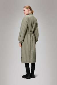 Banja Liner W Coat is a long-coat silhouette in a female fit. The liner has a clean aesthetic with light padding and a belt at waist. Banja Liner W Coat is a versatile transeasonal piece in a lightweight design. Features include a snap button-up closure at front, snap openings at side hem and two zipped side pockets. Banja Liner W Coat has a clean, quilted fit with an elastic binding at front. This jacket is a wardrobe staple that translates well into different looks. The long fit is completed with puffed sleeves and a belt that elegantly accentuates the waist. Banja Liner W Coat is cut from woven nylon with a light padding. It’s developed to be soft, durable and breathable. SKU: 21870\108 Details Composition: 100.00% PA (Polyamide) Water column: Water repellent Breathability: Breathable Fit: Longer Weight: 24 oz Features - Lightweight woven nylon - Quilted light padding - Snap button- up closure at front - Snap opening at side hem - Belt in belt loops at waist - Zipped side pockets - Puffed sleeves - Ribbed sleeve cuffs and neck - Elastic binding at front - Long fit