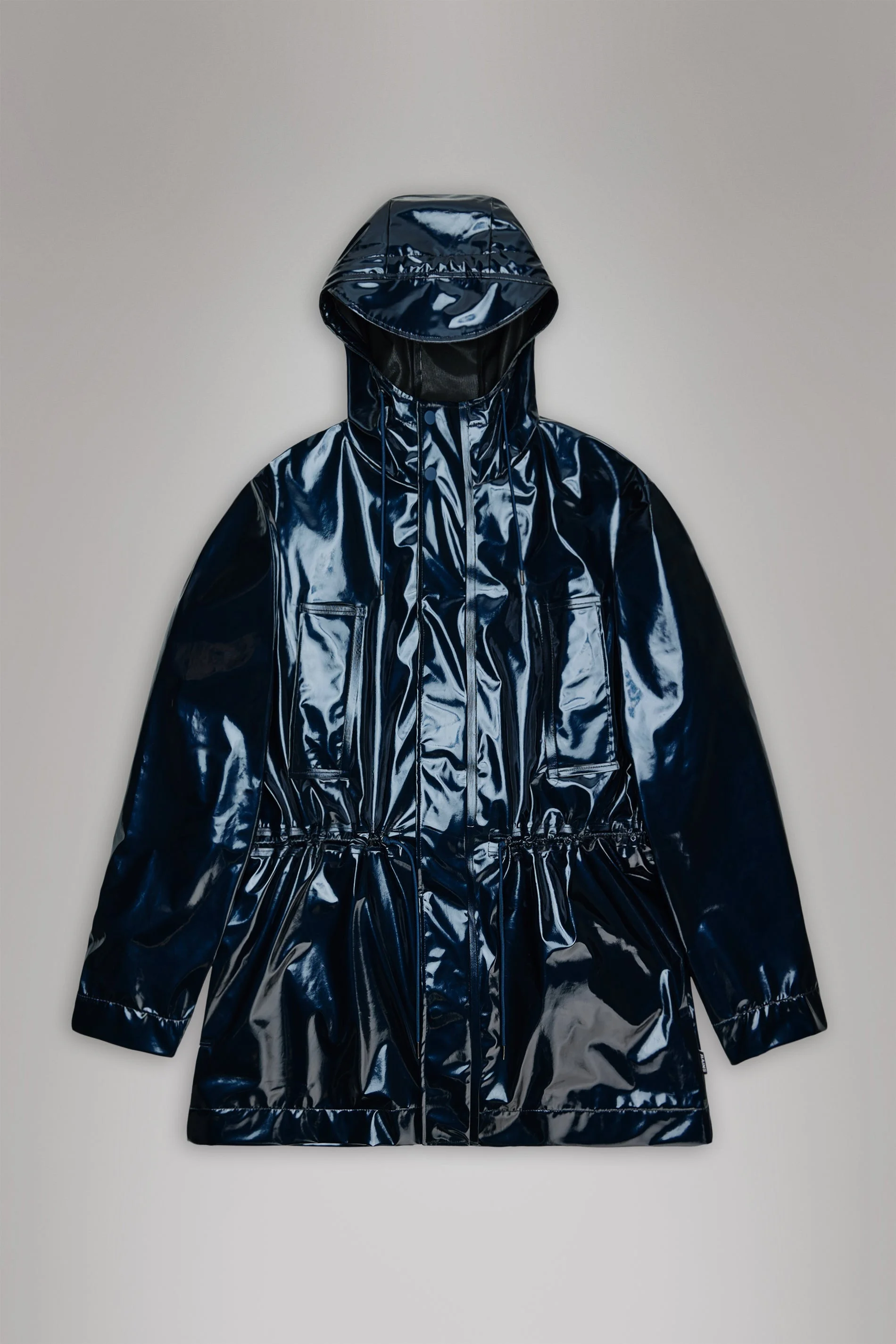 Bold Long Jacket is a unisex rain jacket with a more exaggerated fit. The elevated design delivers high functionality in a bold silhouette. Bold Long Jacket is playing with details in a courageous way. Design features a hood with tie cord, zipper closure under a wide storm flap with snaps and snap closure at cuffs. Back features an exaggerated yoke with mesh lining underneath for breathable comfort. The jacket is completed with a string adjustment at waist and two wide welt slip in pockets to transport and keep your essentials dry moving through the city. This design is cut from Rains’ signature PU fabric and features welded seams. The finish is lightweight with a smooth feel. SKU: 12110\130 Details Composition: 100.00% PES (Polyester) Water column: 5000 mm Windproof: Protection against windchill Fit: Long Weight: 21.9 oz Features: