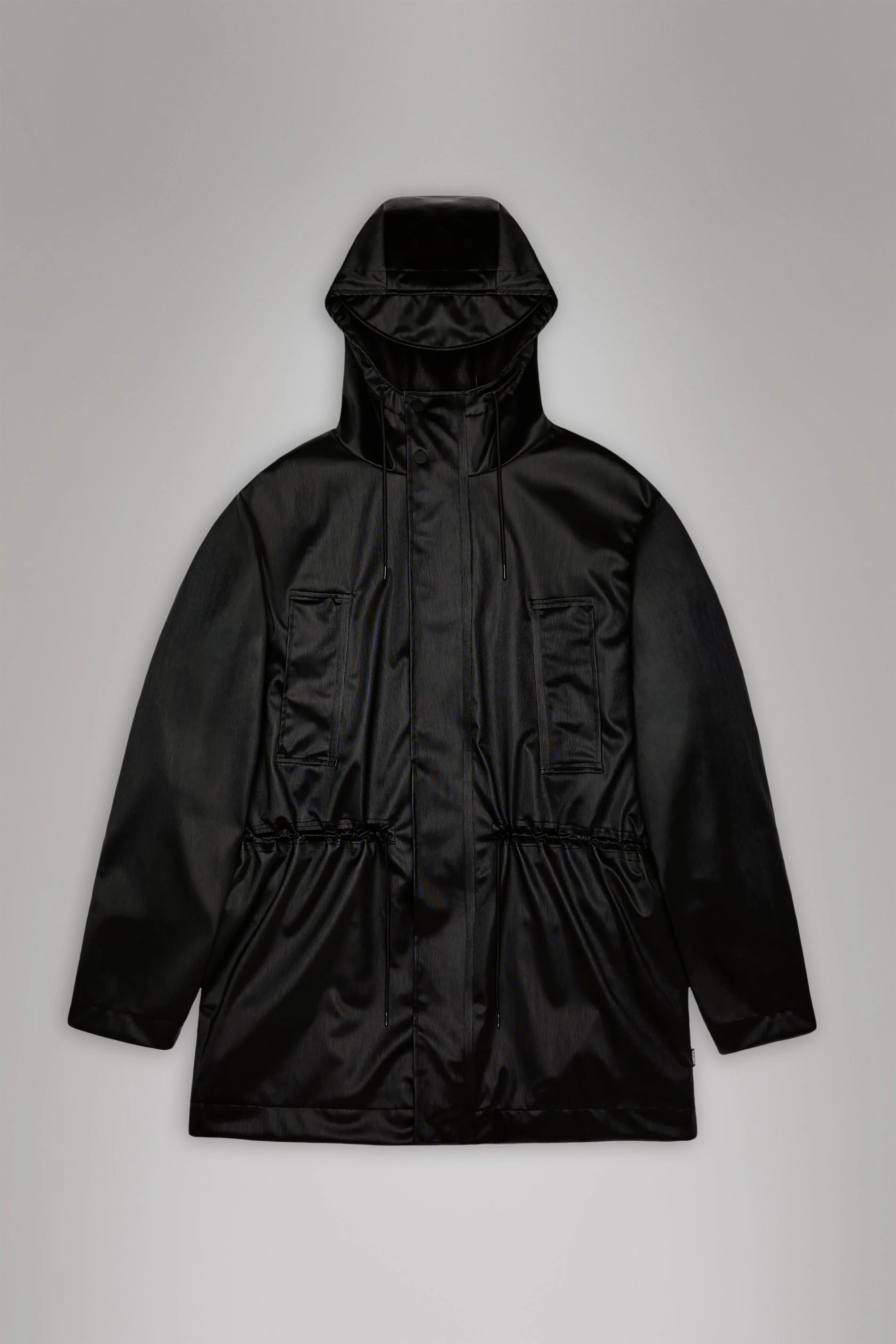 Bold Long Jacket is a unisex rain jacket with a more exaggerated fit. The elevated design delivers high functionality in a bold silhouette. Bold Long Jacket is playing with details in a courageous way. Design features a hood with tie cord, zipper closure under a wide storm flap with snaps and snap closure at cuffs. Back features an exaggerated yoke with mesh lining underneath for breathable comfort. The jacket is completed with a string adjustment at waist and two wide welt slip in pockets to transport and keep your essentials dry moving through the city. This design is cut from Rains’ signature PU fabric and features welded seams. The finish is lightweight with a smooth feel. SKU: 12110\84 Details Composition: 100.00% PES (Polyester) Water column: 5000 mm Windproof: Protection against windchill Fit: Long Weight: 25 oz Features - Waterproof signature PU fabric - Zip closure under wide storm flap with snaps - Hood with tie cord - String adjustment at waist - Exaggerated back yoke with mesh lining underneath - Wide welt slip in pockets - Welded seams - Long fit