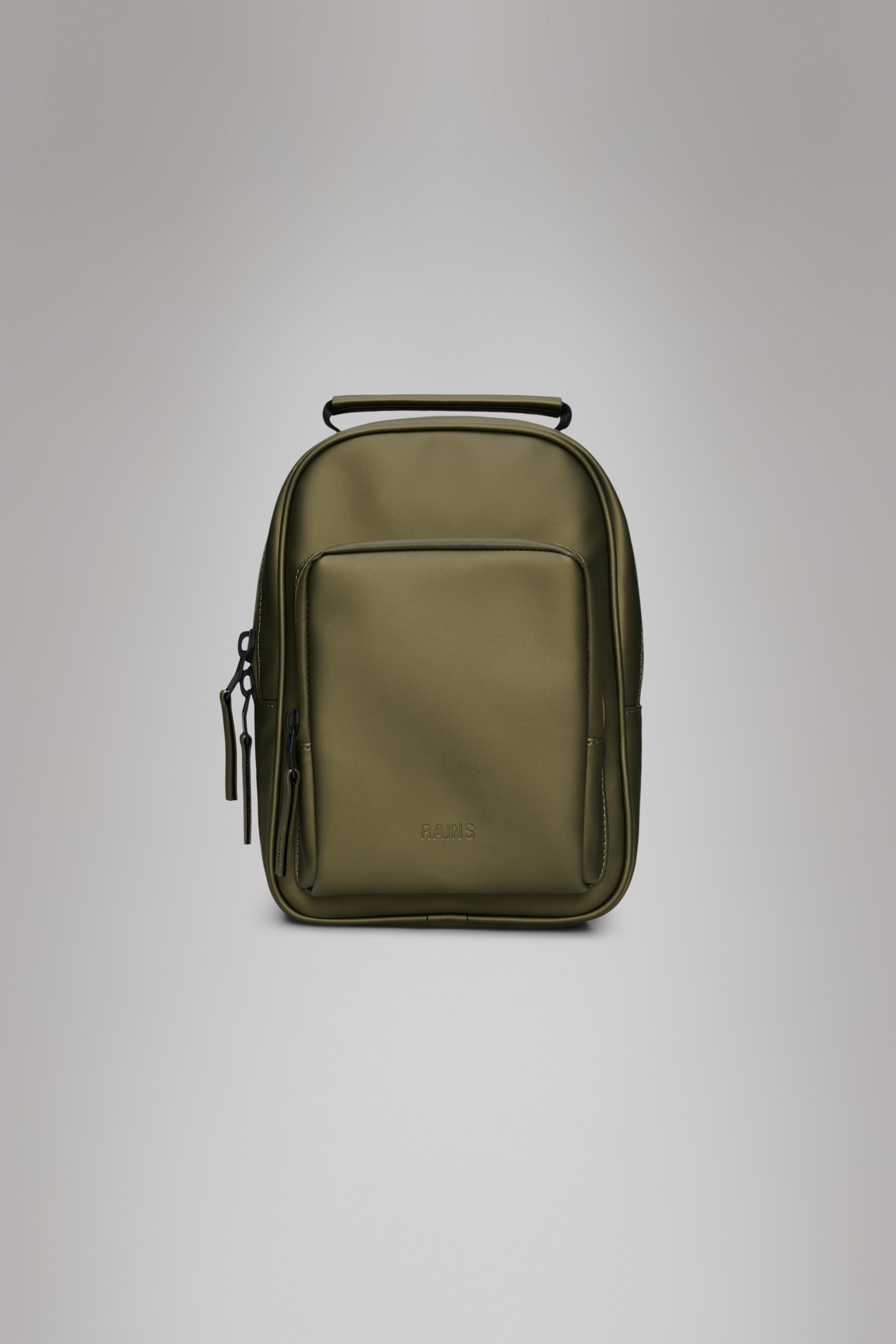 Book Daypack Mini is a compact version of Rains’ Book Daypack. Wear the monostrap as a sling over the shoulder or as an oversized bum bag. Book Daypack Mini is a clean, compact design characterized by fun, yet technical features that offer multiple uses. Wear it cross body as a sling bag over the shoulder with the adjustable monostrap, or clip it around the waist as an oversized bum bag. Perfectly designed for carrying smaller essentials day to day or when traveling. The design has a curved top, coated zip closures and front zip pocket. Open Book Daypack Mini to reveal a main compartment with an internal slip pocket. This style is finished with a webbing carry handle and padded mesh panels on the back for breathable comfort. Book Daypack Mini is cut from Rains’ signature waterproof PU fabric, engineered for carrying strength, durability and a smooth feel. SKU: 13690\105 Details Volume (liter): 1.7 gal Composition: 100.00% PES (Polyester) Water column: 8000 mm Weight: 18.3 oz Features - Waterproof signature PU fabric - Coated zip closure - Single main compartment - Front zip pocket - Internal slip pocket - Padded mesh back panel - Adjustable sling bag monostrap - Quick-release buckle closure - Webbing carry handle