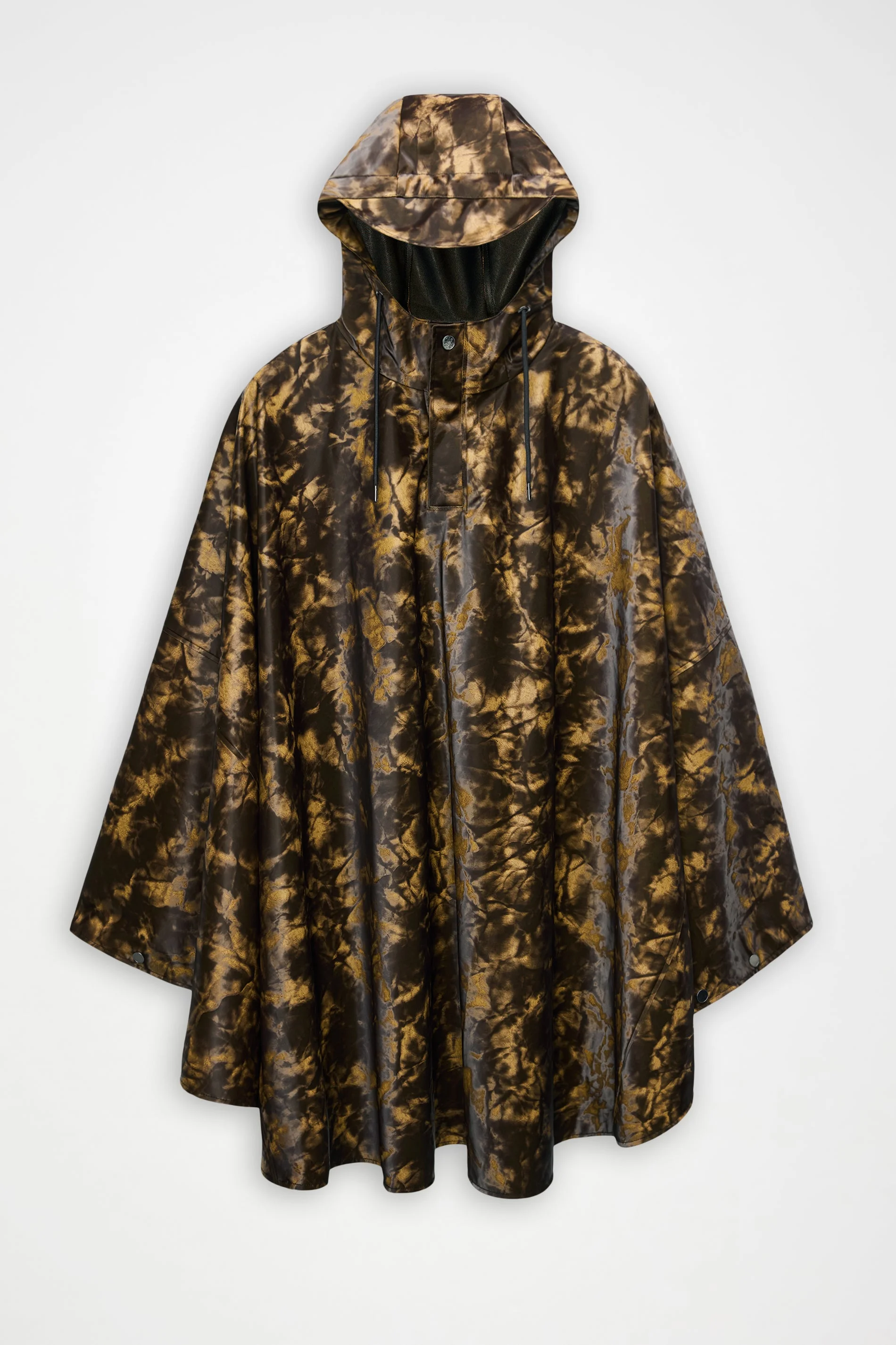 Cape is a modern take on the classic rain poncho, modified for cyclists and an active lifestyle. Characterized by a loose and billowing silhouette. The cape has a light fit with a snap-fastened half placket. Optional sleeves can be created through snap fastenings at arms. Thumbholes ensure a secure fit even during cycle commutes. Cape is finished with a hood with built-in cap and drawstring. This roomy cape with an elegant drape is cut from Rains' signature PU fabric and features welded seams. The finish is lightweight with a slightly structured feel. SKU: 18800\152 Details Composition: 100.00% PES (Polyester) Water column: 5000 mm Windproof: Protection against windchill Fit: Long Weight: 22.9 oz Features: