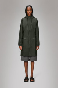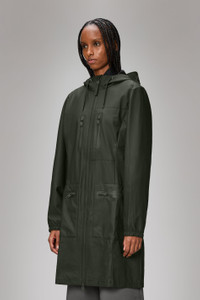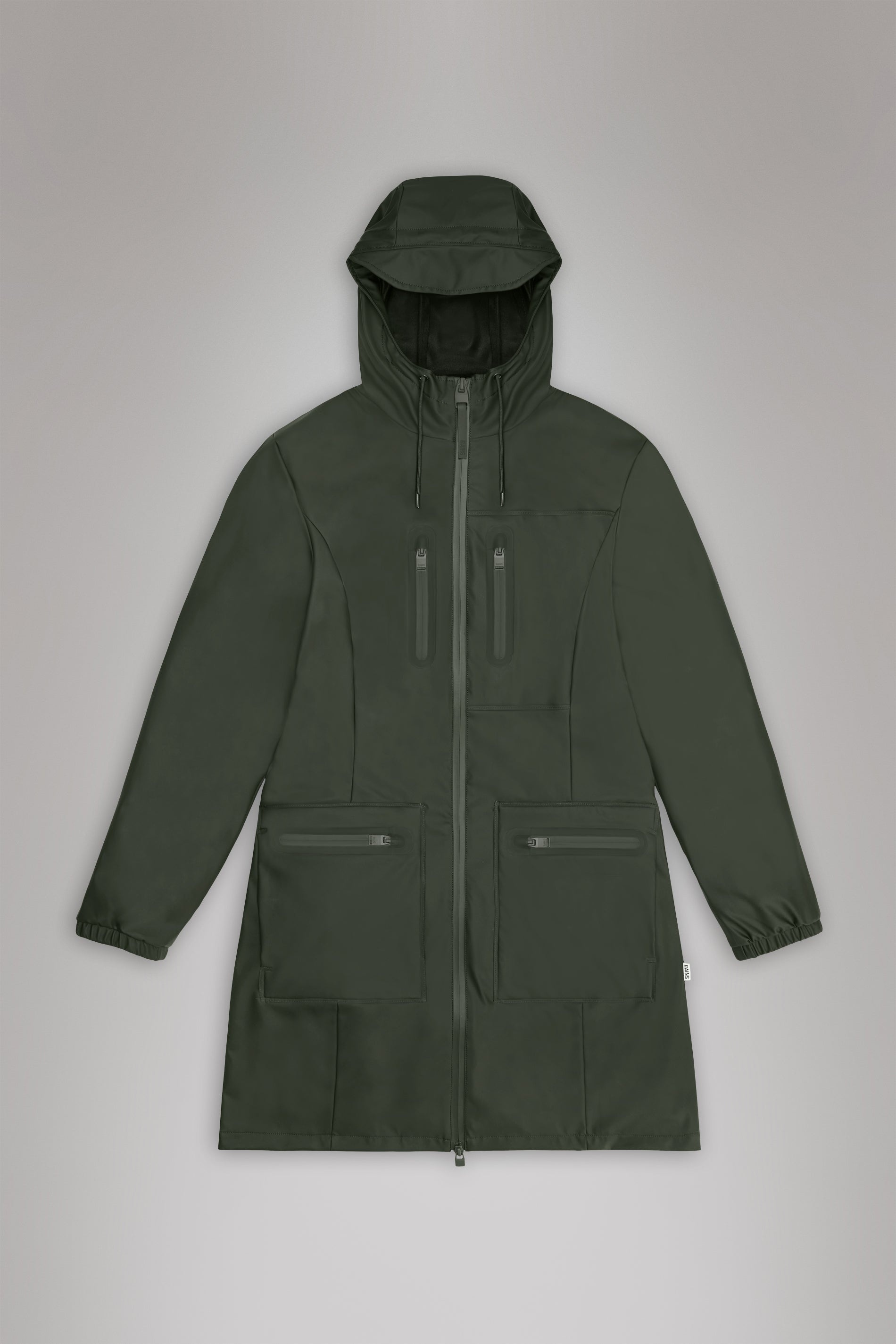 Cargo Curve Jacket is a clean women’s raincoat with a slightly shaped fit accentuating the waist. It's designed to block out water, wind and chill. This women’s raincoat taps into demands of city living. The figure-flattering jacket is designed to be durable, water-repellent yet breathable with improved features. Cargo Curve Jacket is a weather-ready staple. It's designed with elasticated sleeve cuffs, waterproof zip closure and hood with drawstring and built-in cap to block out water, wind and chill. The look is completed with welded zip-fastening front cargo pockets and rubberized weatherproof hardware. Cargo Curve Jacket is cut from Rains’ signature PU fabric and features welded seams. Underarm eyelets ensure ventilation for breathable comfort. The finish is soft with a lightweight feel and elegant drape. SKU: 12050\03 Details Composition: 100.00% PES (Polyester) Water column: 5000 mm Windproof: Protection against windchill Fit: Long Weight: 19.4 oz Features - Waterproof signature PU fabric - Hood with built-in cap and drawstring - Waterproof zip closure - Elasticated sleeve cuffs for a tighter fit around wrists - Welded cargo pockets with zip closure - Ventilation eyelets under arm - Slightly shaped fit - Rubberized weatherproof hardware