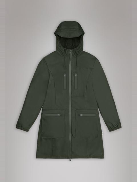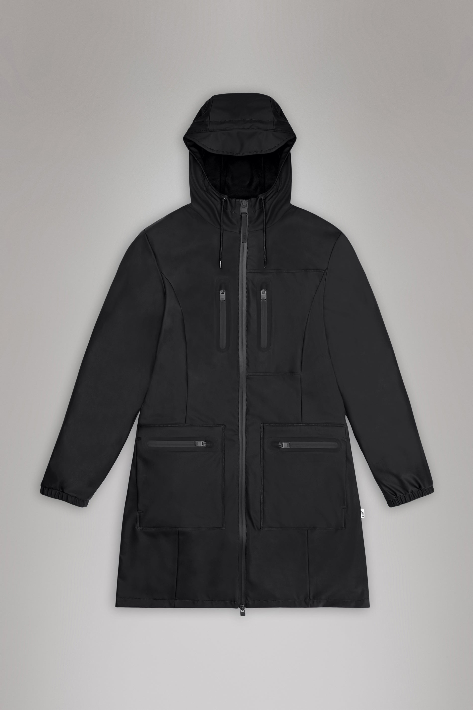 Cargo Curve Jacket is a clean women’s raincoat with a slightly shaped fit accentuating the waist. It's designed to block out water, wind and chill. This women’s raincoat taps into demands of city living. The figure-flattering jacket is designed to be durable, water-repellent yet breathable with improved features. Cargo Curve Jacket is a weather-ready staple. It's designed with elasticated sleeve cuffs, waterproof zip closure and hood with drawstring and built-in cap to block out water, wind and chill. The look is completed with welded zip-fastening front cargo pockets and rubberized weatherproof hardware. Cargo Curve Jacket is cut from Rains’ signature PU fabric and features welded seams. Underarm eyelets ensure ventilation for breathable comfort. The finish is soft with a lightweight feel and elegant drape. SKU: 12050\01 Details Composition: 100.00% PES (Polyester) Water column: 5000 mm Windproof: Protection against windchill Fit: Long Weight: 19.4 oz Features - Waterproof signature PU fabric - Hood with built-in cap and drawstring - Waterproof zip closure - Elasticated sleeve cuffs for a tighter fit around wrists - Welded cargo pockets with zip closure - Ventilation eyelets under arm - Slightly shaped fit - Rubberized weatherproof hardware