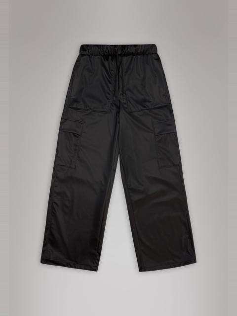 Cargo Rain Pants Wide are lightweight wet-weather mainstays with a wide fit. Designed to be worn over trousers or shorts for a weatherproof outfit. These wide and easy packable Cargo Rain Pants feature elasticated waistband and cuffs with concealed adjustable drawstring to alter the silhouette or safeguard against rips on cycle commutes. Cargo Rain Pants are designed with an aesthetic, functional and comfortable fit. Design is finished with welded side pockets and front cargo pockets. Cargo Rain Pants Wide are cut from Rains' signature Pu fabric and feature welded seams. The finish is lightweight with a smooth feel. SKU: 18990\149 Details Composition: 100.00% PES (Polyester) Water column: 5000 mm Windproof: Protection against windchill Fit: Wide Weight: 15.5 oz Features: