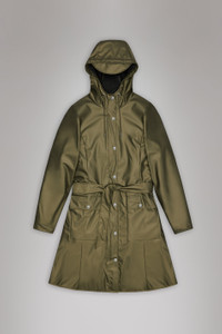 Curve Long Jacket is a clean women's raincoat with a slightly shaped silhouette accentuating the waist. Designed to block out water, wind and chill. This design with a minimal silhouette is Rains' interpretation of the women's trenchcoat. The design is figure-flattering with high functionality. Curve Jacket is a weather-ready staple designed with a drawstring hood with built-in cap, coated zip closure with snap-fastened placket and snap adjustment at sleeve cuffs. The look is completed with two front pockets and under-arm eyelets to ensure breathable comfort. This women's rain jacket is cut from Rains' signature PU fabric and features ultrasonically welded seams. The finish is lightweight with a smooth feel. SKU: 18130\105 Details Composition: 100.00% PES (Polyester) Water column: 5000 mm Windproof: Protection against windchill Fit: Long Weight: 19.4 oz Features - Waterproof signature PU fabric - Hood with built-in cap and drawstring - Coated zip closure including placket with snap fastenings - Belt at waist for shaped fit - Two front pockets with snaps - Snap adjustment at sleeve cuffs - Ventilation eyelets under arms - Welded seams - Fishtail hem - Slightly shaped fit