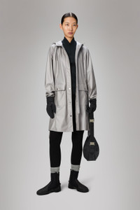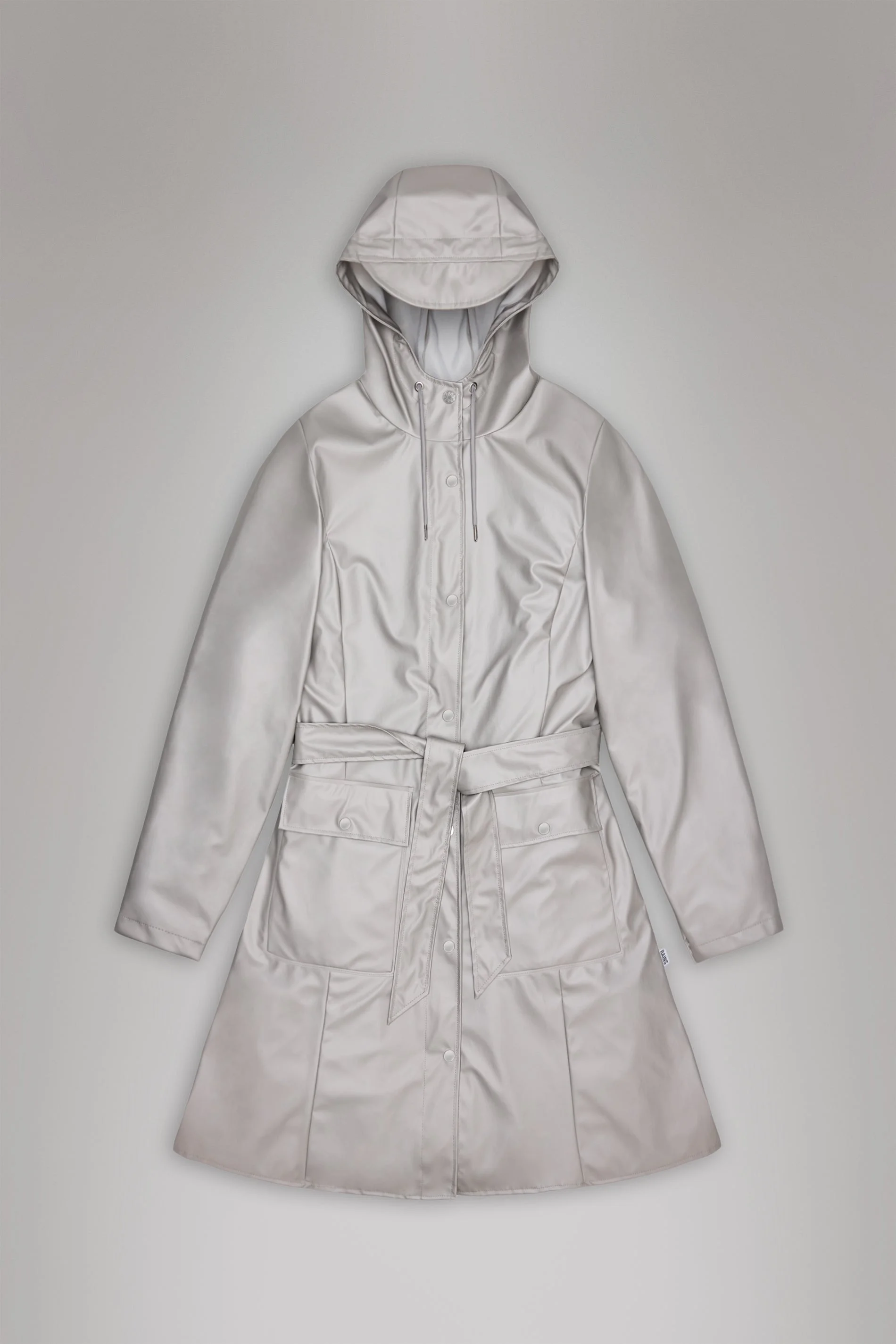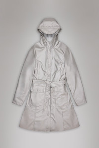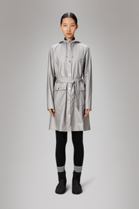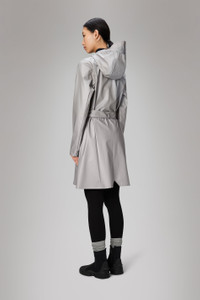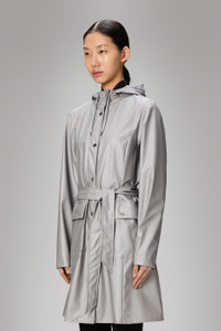 Curve Long Jacket is a clean women's raincoat with a slightly shaped silhouette accentuating the waist. Designed to block out water, wind and chill. This design with a minimal silhouette is Rains' interpretation of the women's trenchcoat. The design is figure-flattering with high functionality. Curve Jacket is a weather-ready staple designed with a drawstring hood with built-in cap, coated zip closure with snap-fastened placket and snap adjustment at sleeve cuffs. The look is completed with two front pockets and under-arm eyelets to ensure breathable comfort. This women's rain jacket is cut from Rains' signature PU fabric and features ultrasonically welded seams. The finish is lightweight with a smooth feel. SKU: 18130\123 Details Composition: 100.00% PES (Polyester) Water column: 5000 mm Windproof: Protection against windchill Fit: Long Weight: 17.6 oz Features - Waterproof signature PU fabric - Hood with built-in cap and drawstring - Coated zip closure including placket with snap fastenings - Belt at waist for shaped fit - Two front pockets with snaps - Snap adjustment at sleeve cuffs - Ventilation eyelets under arms - Welded seams - Fishtail hem - Slightly shaped fit