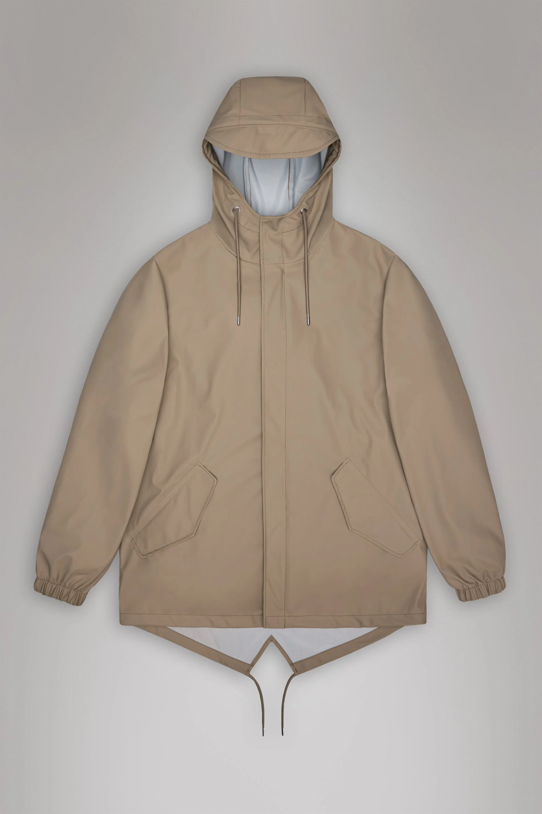 Fishtail Jacket is a unisex raincoat. Characterized by its pared-back aesthetic and drawstring fishtail hem. This design features utility-inspired pockets, vented back yoke and a hood with built-in cap and drawstring. Style is finished with elasticated cuffs for a tighter fit around wrist. Fishtail Jacket has a casual fit with an elegant drape, making it a clear cut raincoat for daily commutes. The coated zip closure is concealed by a placket with snap fastenings. This rain jacket is cut from Rains' signature PU fabric and features welded seams. The finish is lightweight with a soft feel. SKU: 18010\133 Details Composition: 100.00% PES (Polyester) Water column: 5000 mm Windproof: Protection against windchill Weight: 19.4 oz Features - Waterproof signature PU fabric - Hood with built-in cap and drawstring - Coated zip closure including placket with snap fastenings - Two utility front pockets - Elasticated cuffs for a tighter fit around wrist - Fishtail hem with drawstring - Elbow pleats for improved movement - Back yoke with concealed vents - Welded seams - Casual fit