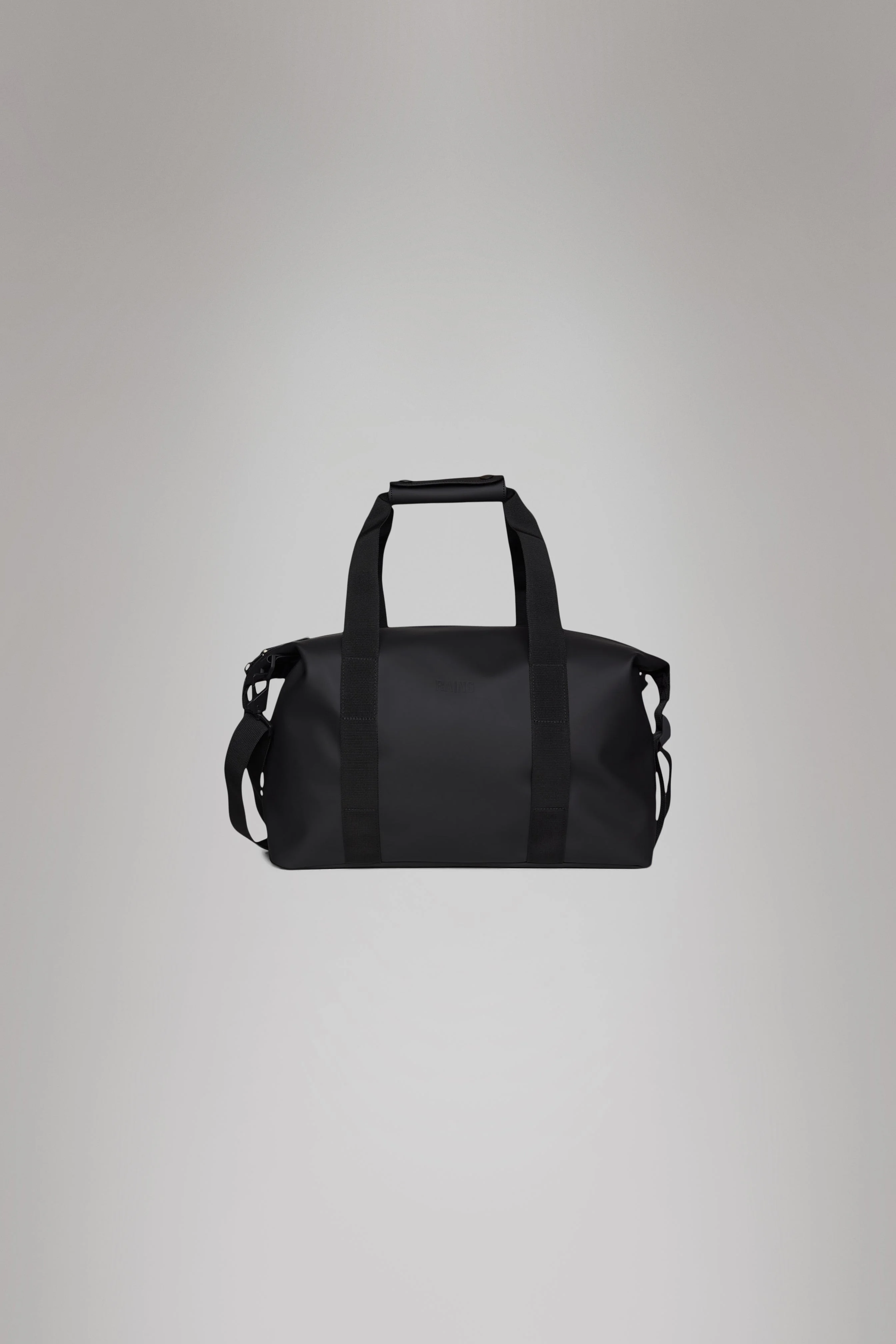 Hilo Weekend Bag Small is Rains’ take on the essential overnight bag – the smallest of three sizes. Hilo Weekend Bag Small is a true favorite when traveling light. The design is clean and contemporary, balancing Rains’ waterproof fabric with signature strap and hardware details. Open the coated full-length zip to find a spacious single main compartment – with room for clothing, tech and more. Once packed, secure belongings via the silhouette’s side-mounted compression straps. The design is finished with webbing carry handles, with comfort sleeve, and attachment rings for an included detachable shoulder strap. Hilo Weekend Bag Small is cut from Rains’ signature waterproof PU fabric, engineered for carrying strength, durability, and a smooth feel. SKU: 14220\01 Details Composition: 100.00% PES (Polyester) Water column: 8000 mm Weight: 22.6 oz Features - Waterproof signature PU fabric - Coated zip closure - Single main compartment - Side compression straps - Detachable adjustable webbing shoulder strap - Webbing carry straps with handle wrap
