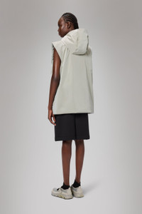Lohja Insulated Vest is a lightweight transeasonal piece for days when layering is essential. Design is understated with high practicality. Lohja Insulated Vest features fleece-lined side pockets and an inside zipped pocket. Topped by an insulated hood with tie cords. The Lohja collection fills the gap between rainwear and winter jackets. This sleeveless silhouette is wearable both as an insulating midlayer or as a simple, light vest. Designed to provide coverage where it's needed most, it's cut from lightweight woven polyester that's padded for warmth and to enhance its shape. The waterproof vest is cut from Rains’ signature PU fabric with welded seams. The finish is lightweight with a smooth feel. SKU: 15800\103 Details Water column: 5000 mm Breathability: 3.000 g/m2 water vapor transmission Windproof: Protection against windchill Weight: 15.9 oz Features - Waterproof signature PU fabric - Light insulation and 100% nylon liner - Insulated hood with tie cords - Fleece- lined side pockets - Inside zipped pocket - Rubberized weatherproof hardware - Welded seams - Relaxed fit