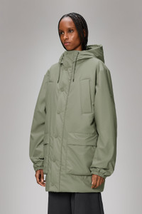 Lohja Long Insulated Cargo Jacket is a lightweight transeasonal piece in a long silhouette. This design delivers high practicality with cargo pocket details. The style features welt chest pockets, cargo pockets with fleece lining and an inside zipped pocket. Topped by an insulated hood with tie cords. With it's long silhouette, PU coating and insulated light padding, this Cargo Jacket from the Lohja collection fills the gap between rainwear and winter jackets. The waterproof jacket is cut from Rains’ signature PU fabric with welded seams. The finish is lightweight with a smooth feel. SKU: 17120\108 Details Composition: 100.00% PES (Polyester) Water column: 5000 mm Breathability: 3000 g/m2 water vapor transmission Windproof: Protection against windchill Fit: Long Weight: 23.3 oz Features - Waterproof signature PU fabric - Light insulation and 100% nylon liner - Zip closure under placket with visible snaps - Insulated hood with tie cords - Welt chest pockets - Cargo pockets with fleece lining - Inside zipped pocket - Elasticated cuffs - Rubberized weatherproof hardware - Welded seams - Long fit