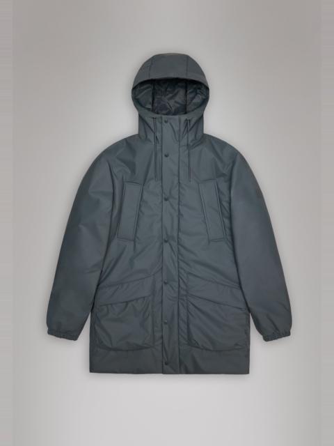 Lohja Long Insulated Cargo Jacket is a lightweight transeasonal piece in a long silhouette. This design delivers high practicality with cargo pocket details. The style features welt chest pockets, cargo pockets with fleece lining and an inside zipped pocket. Topped by an insulated hood with tie cords. With it's long silhouette, PU coating and insulated light padding, this Cargo Jacket from the Lohja collection fills the gap between rainwear and winter jackets. The waterproof jacket is cut from Rains’ signature PU fabric with welded seams. The finish is lightweight with a smooth feel. SKU: 17120\124 Details Composition: 100.00% PES (Polyester) Water column: 5000 mm Breathability: 3000 g/m2 water vapor transmission Windproof: Protection against windchill Fit: Long Weight: 23.3 oz Features: